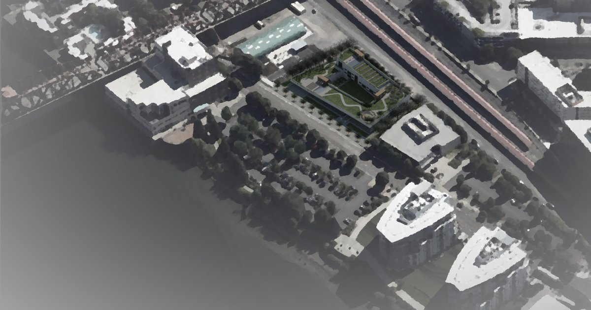 Public space continues over the top of the building as a continuous park accessed from public stairs and elevators. The park includes a tree lined, looping path with plenty of places to sit, an outside theater, and a playground. Over the residential wing are semiprivate gardens for residents where they can grow their own food or flowers. At the top, residents can gather as a neighborhood on their own patio with views of the city all around and to the river to the east. Water features and birds drawn by the trees and landscaping help mask the city noise.