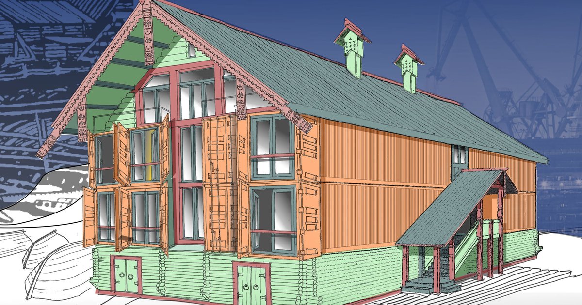 The basis of the suggested project is the placement of a dormitory for students and teachers of the Murmansk Marine Fisheries College named after I.I. in northwestern Russia. The project that you are considering suggests forming of structural style made of sea or rail containers to resemble a traditional Russian dwelling - a hut.