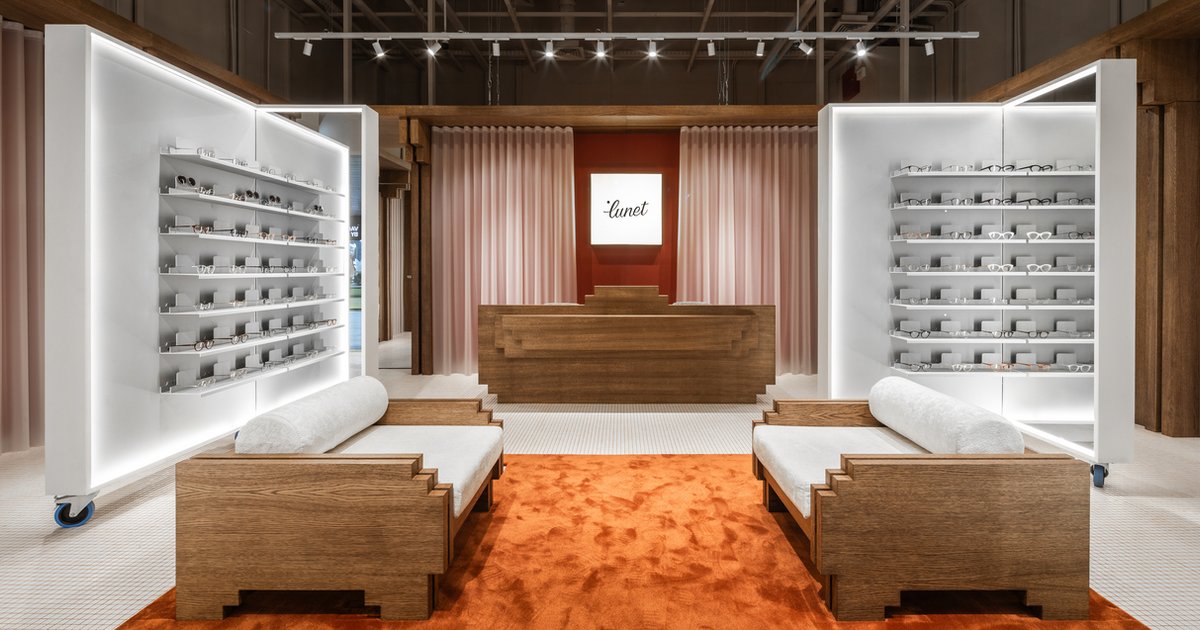 The Lunet Boutique is a nod to classic eyewear stores, reimagined for the modern era. The design strips away superfluous elements, distilling shapes and volumes to their essence. This minimalist approach results in a playful, almost pixelated environment that focuses on essential details, creating a space that is both functional and aesthetically pleasing.