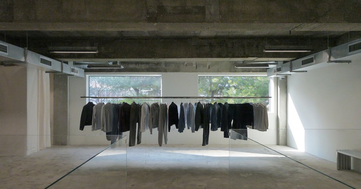 This rawness is not industrial for style’s sake — it is structural honesty. Clothing hangs from racks not attached to walls, but suspended between columns and voids. The garments float like linear brushstrokes across concrete sky.
