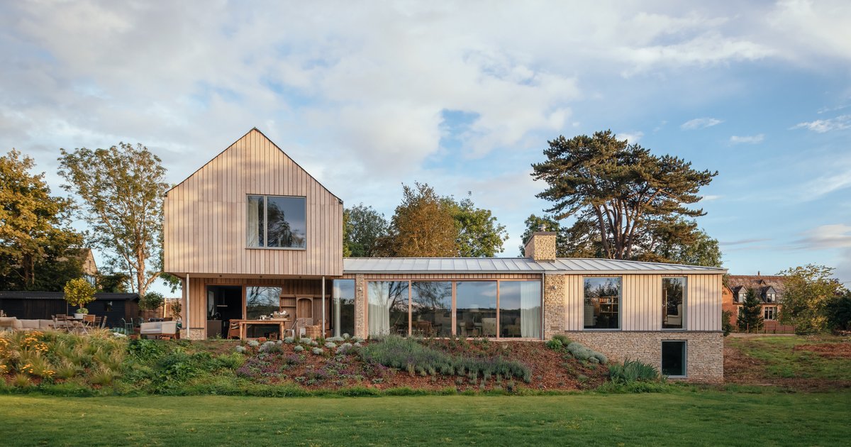 A modern Cotswolds home blending stone, timber, and sustainable design, offering stunning valley views, calm interiors, and a refined countryside lifestyle.