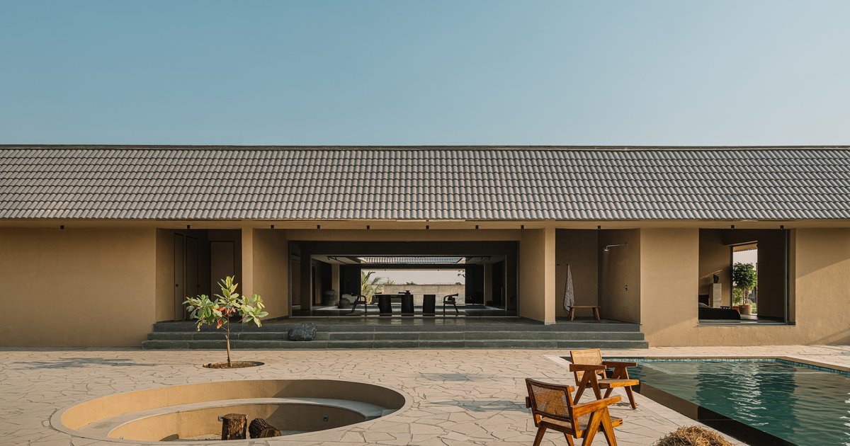 Nestled on the serene outskirts of Surat, India, the Courtyard House by D’WELL exemplifies modern tropical architecture while honoring traditional Chettinad influences. Spanning 920 m², this thoughtfully designed farmhouse offers a sanctuary for a family seeking slow living, connection with nature, and an immersive indoor-outdoor experience. Completed in 2024, the project harmoniously blends contemporary design with timeless vernacular elements, creating a home that is both functional and poetic.