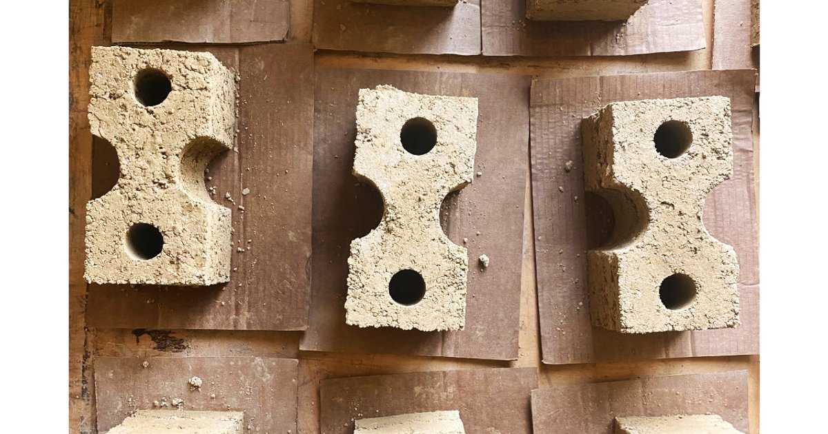 The main material of the project is the Earth block. This block is built by mixing dirt excavated from the site with additives, sand or straw, and protected with a mixture of limestone and cement for waterproofing and durability. The block unit is made by a customizable mold design that allows varied, modular stacking arrangements.