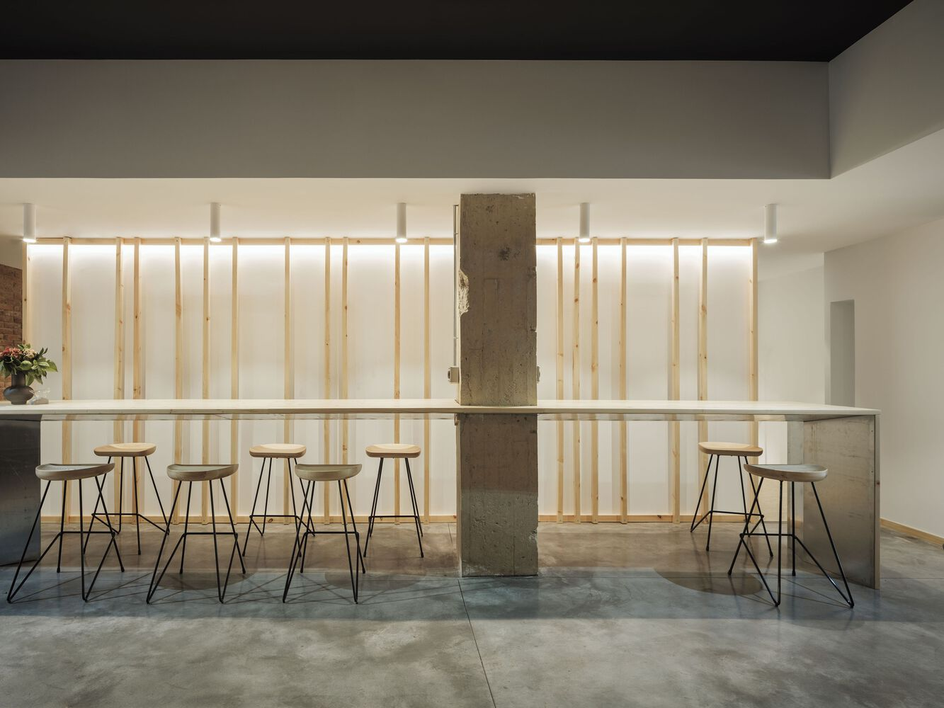The interior palette is purposefully restrained to just five elements—exposed concrete, fir wood, glass, natural light, and lush greenery—highlighting user activity rather than the architecture itself. Concrete flooring anchors the memory of the garage's industrial past, while fir wood partitions and furniture add warmth and tactility. Generous glazing fosters visual transparency and spatial cohesion. Live plants and sunlight, essential to the project’s ethos, create a calming, identity-rich environment that energizes the users and connects them to nature.