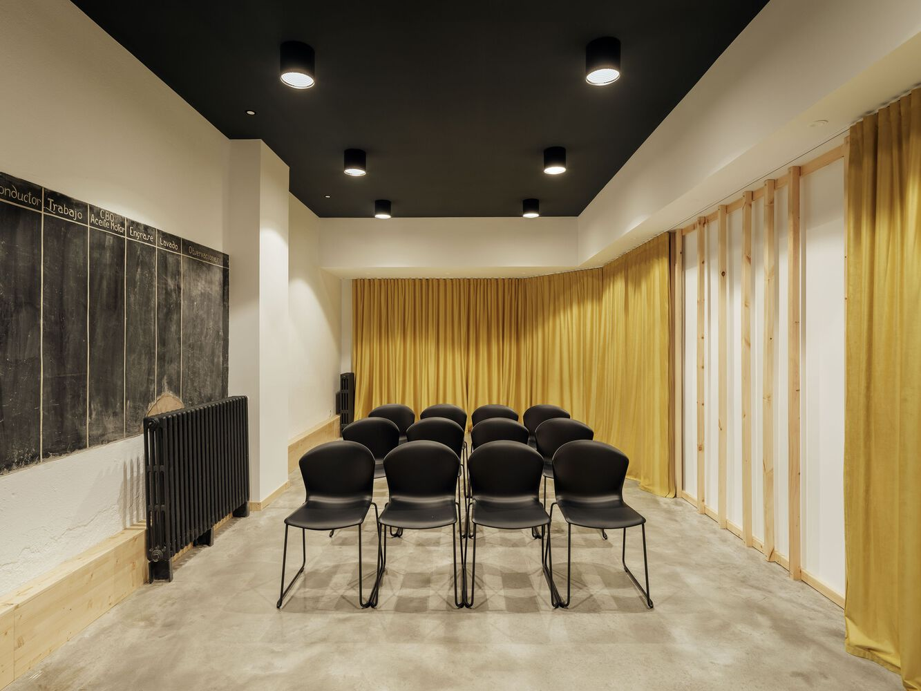 - Central Zone: Anchored by a small kitchen and restrooms, this open section supports casual interactions and cultural events, such as exhibitions or informal gatherings over coffee.