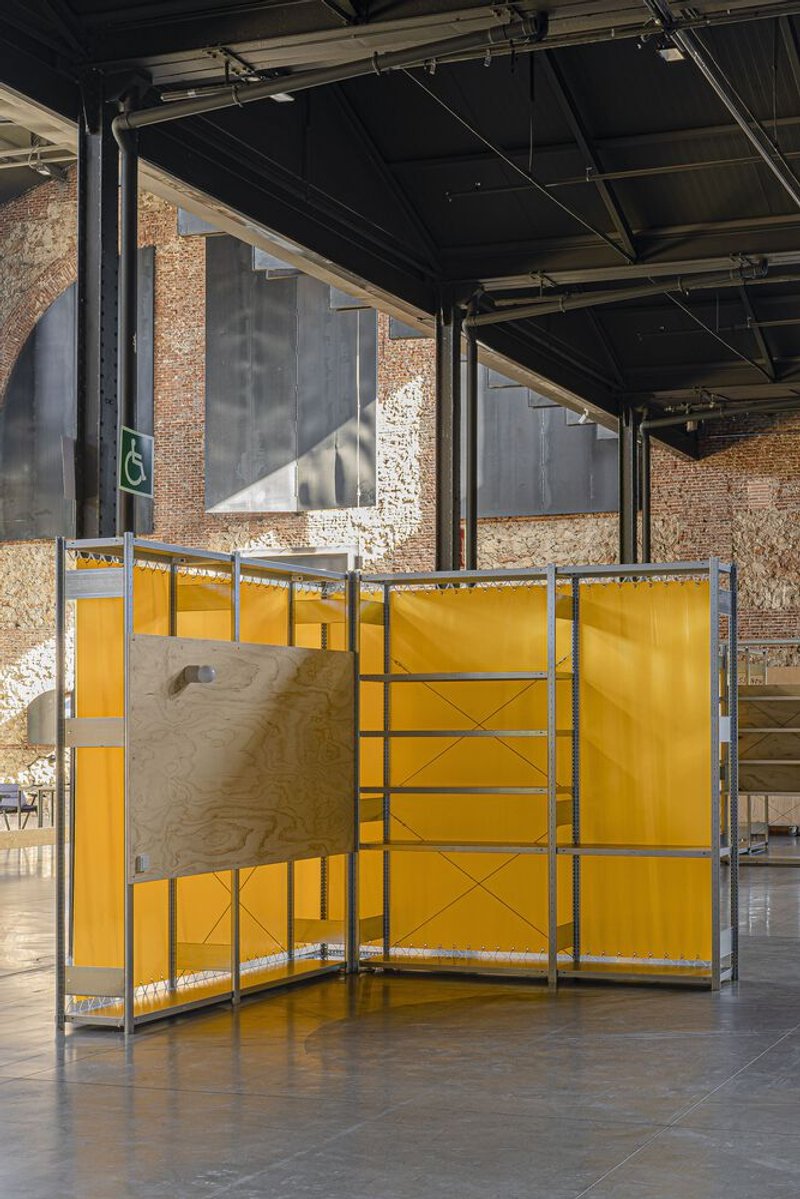 The CRA project consists of a series of modular and reconfigurable elements that transform the warehouse into a multifunctional artistic environment. Each element is designed to address specific residency needs—privacy, shared community space, storage, workshops, and presentations.