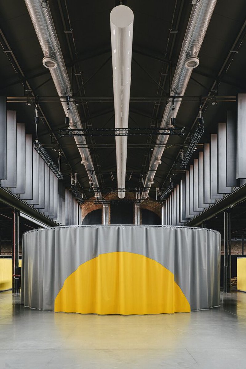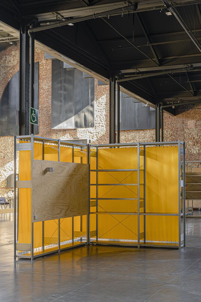 The intervention avoids permanence in both material and form. It employs lightweight materials like stretched tarpaulins, aluminum structures, and textile barriers to define space without heavy architectural imposition. This deliberate ephemerality underscores BURR Studio’s intention to serve—not dominate—the artistic process.