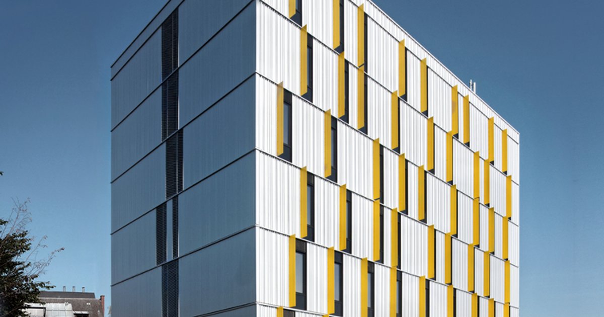 More than a technical achievement, the CRAC Building project offers a fresh architectural identity through material contrast and façade articulation. A palette of lightweight materials—including aluminum and timber—highlights modularity and precision in assembly. Yellow-accented sunshades and entrance elements add a vivid contemporary expression, while warm interior fir finishes contrast with the high-tech look of the exterior.