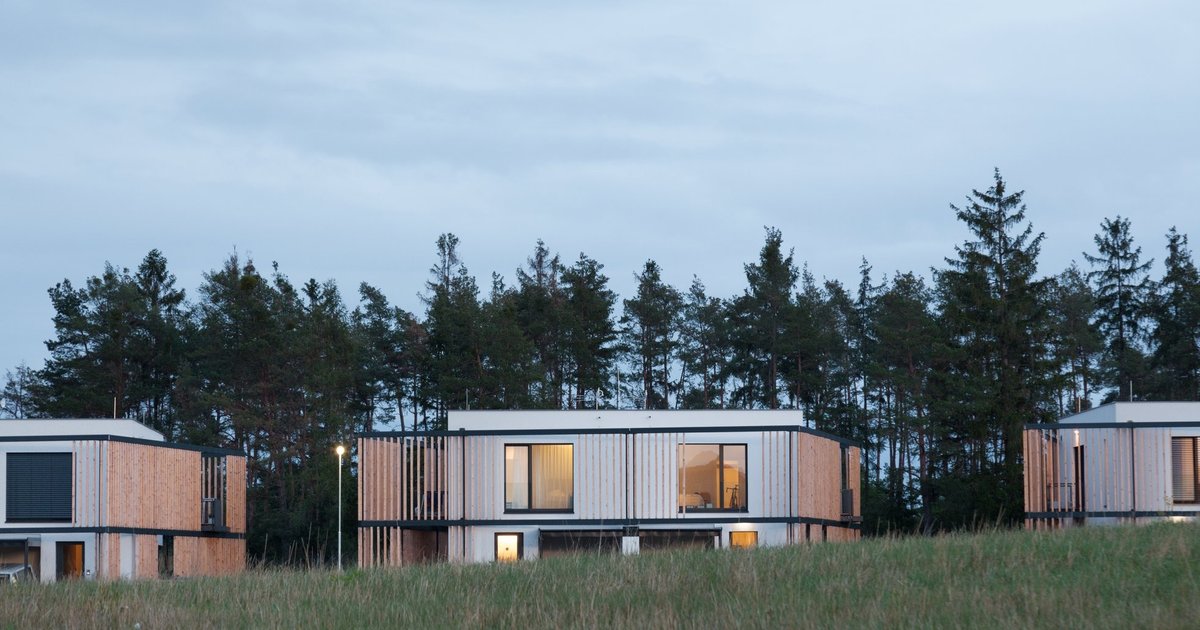 The project also engages with environmental performance. The wooden slat system contributes to passive shading, reducing solar gain during warmer months while allowing filtered daylight to penetrate interiors. This reduces dependency on mechanical cooling and enhances overall comfort. The proximity to the forest further supports a microclimatic advantage, reinforcing the project’s integration with its surroundings.