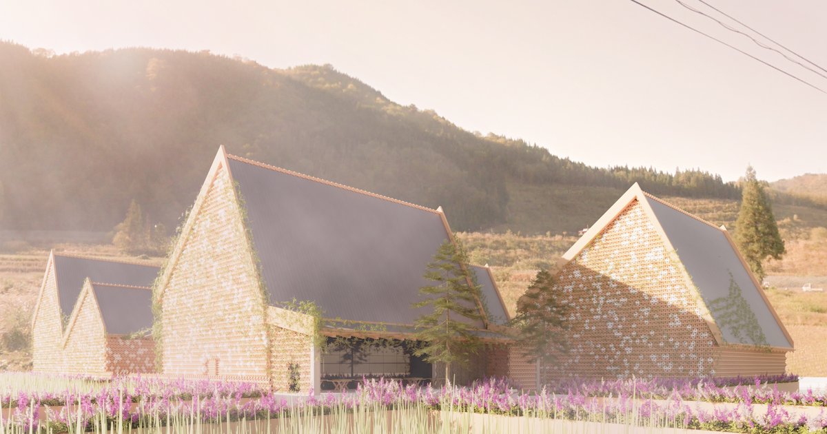 Shirakawa-go is specialized in its Gassho House style, which is still maintained in the town and led it to be considered a UNESCO Site. As for that, design process started with the modules, which utilize the 60 degrees used in the house’s roofs. Similarly, wood is found abundantly in the town and is used in the town’s classic architecture, from structure to the wood used in facades. This inspired the decision to choose wood, specifically Japanese Cyprus due to its longevity and historical use with Japanese joints, as the main material for the module. Other versions of the module are made of white ceramic, a cultural production in the area, and steel roofs that match the colour of thatched roofs. Due to this choice of building, the expertise of the town’s people is intended to be used in construction. In renewals that might need to occur to the façade, generations will continue to participate in the center.