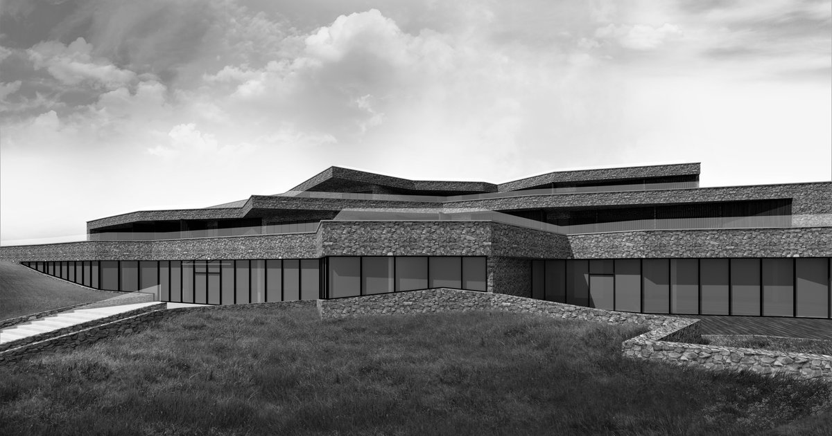 The architectural form is created by 4 cuboidal solids in which the building's cubature is placed. One is completely underground and three lumps are partially recessed into the ground, giving them the shape of a cliff. The roof of the guesthouse is planted with vegetation, thanks to which the building is invisible outside the walls. Hiding the guesthouse underground shows respect for the local architecture and landscape. The facility has a terrace character. Entrances to the observation deck are designed by pulling one edge upwards, giving the shape of a protruding cliff. A viewing axis has been marked out in the study area. It runs from the central part of the end of the plot to the south overlooking the Atlantic Ocean, so the main entrance to the building is on the viewing axis. Stairs carved in the rock lead to the building.