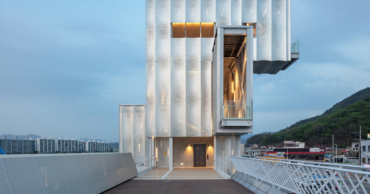 Exploring the innovative use of curved aluminum panels at A Thousand Plateaus Observatory by Emer-sys in Chuncheon-si, South Korea