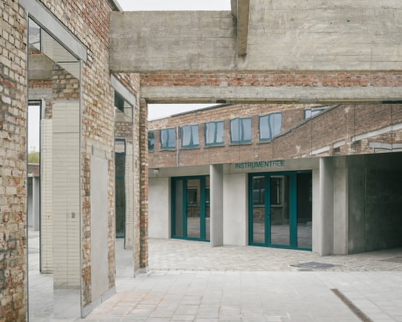 Location: Kortrijk, Belgium Architects: TRANS architectuur | stedenbouw Area: 3,300 m² Year Completed: 2023 Photographs: © Stijn Bollaert Structural Engineering: BDA engineering Acoustics Consultant: Bureau De Fonseca bvba Manufacturers: Reynaers Aluminium, Alucobond, Derbigum Featured Product: MasterLine 10 by Reynaers Aluminium