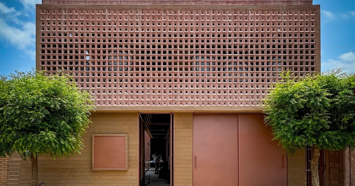 The façades are wrapped in pigmented concrete lattice screens with varying apertures. These lattices filter sunlight, reduce heat gain, and provide privacy for offices and consultation rooms without disconnecting them from the outdoors. As daylight passes through the patterned screens, shifting shadows animate walls, floors, and circulation spaces, turning time and light into integral design materials.