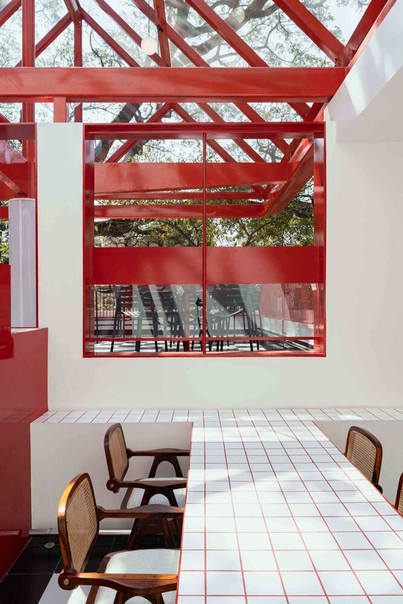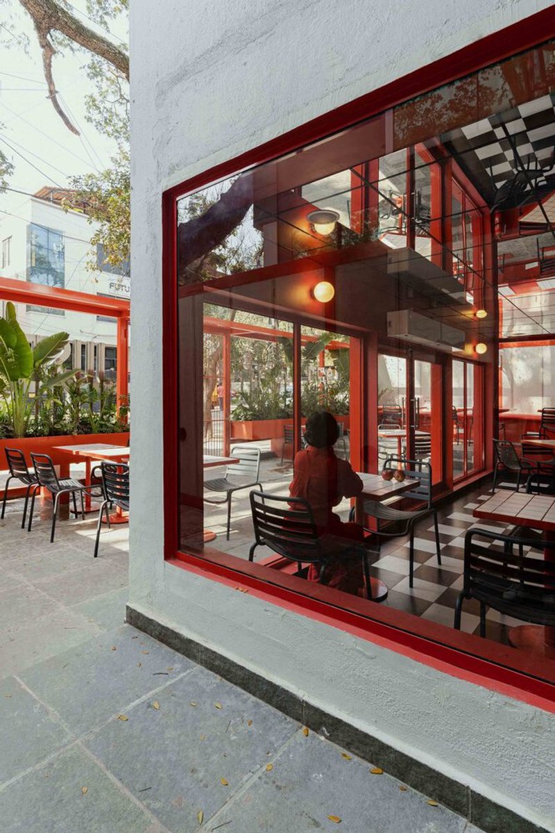 Located in the heart of Bangalore, Diner Just Loaf is a striking example of modern architecture, designed by Cochin Creative Collective. The 40-year-old concrete structure, tucked under the shade of a large rain tree, has been transformed into a dynamic space that blends verticality with nature and urban life. Through innovative use of space and materials, the design optimizes every square foot of the property while creating a sense of openness and connection to the outdoors.