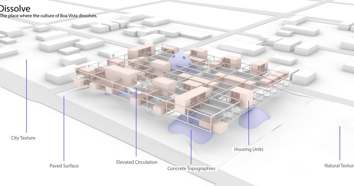 In Boa Vista, Dissolve by Naz Dilsiz and Demir Dikmenoglu redefines the dialogue between built form and the natural environment. The project explores how sustainable architecture design can dissolve the rigid boundaries between structure, culture, and landscape to create a holistic and resilient community space.