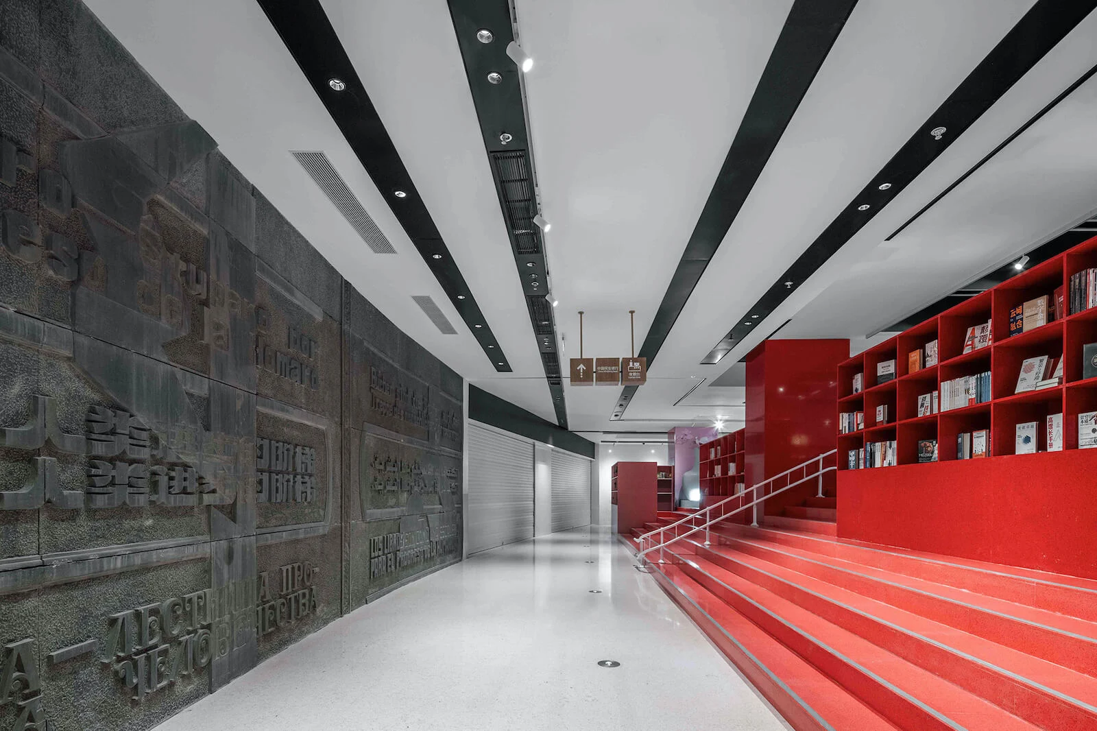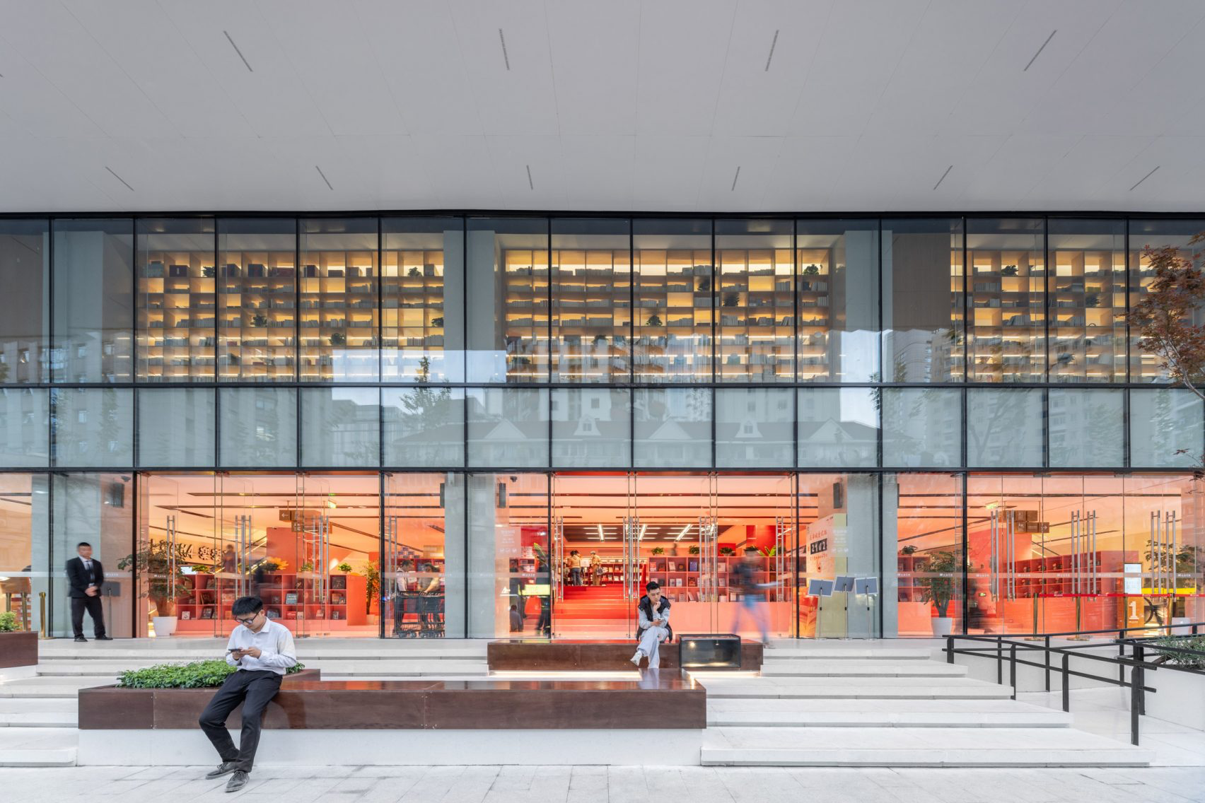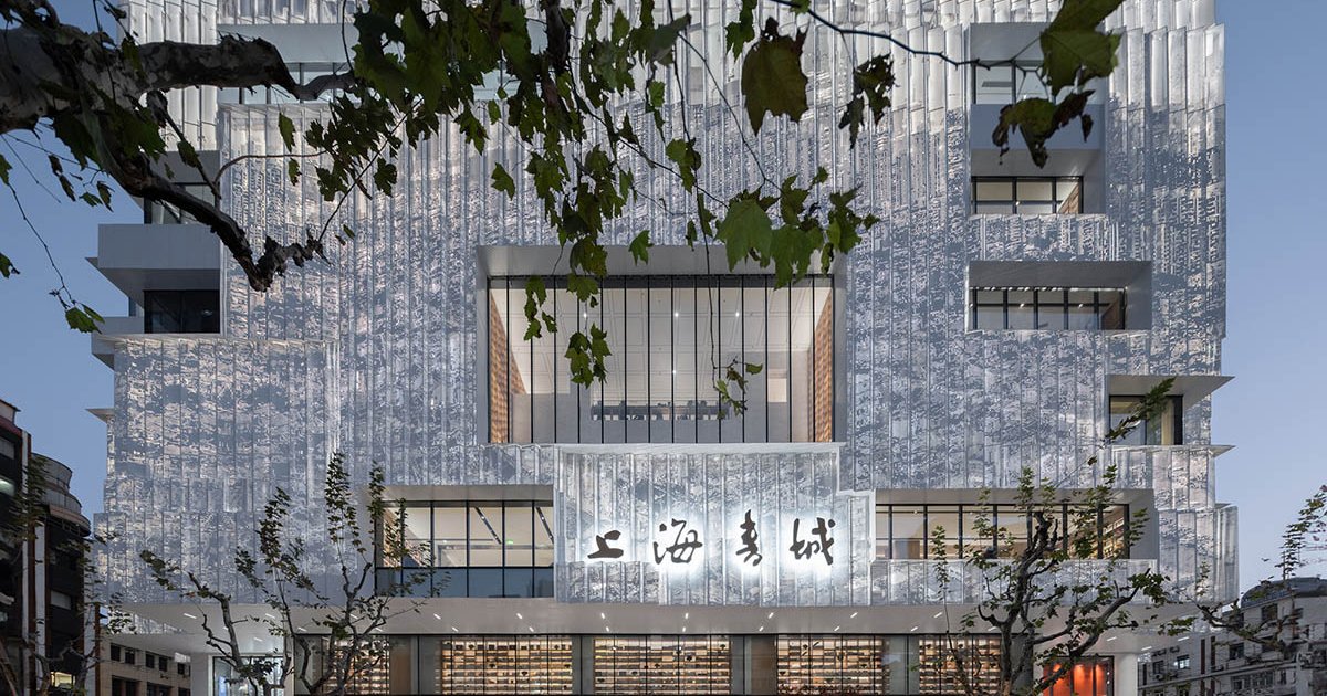 DoBe WE @Shanghai Book City blends poetic architecture and steel facade, creating a surreal space inspired by rain and emotion.