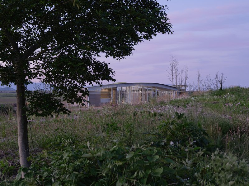 At the heart of Mur Mur Lab’s design is the concept of scenic framing. Instead of merely offering views, the architecture orchestrates the way the landscape is experienced. Visitors encounter the prairie gradually: first through a screen, then a window, followed by a corridor, and finally, from an elevated platform where the full scope of the grassland is revealed.