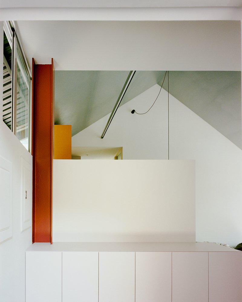 While the church represents the solid and grounded nature of traditional brick construction, the new building introduces a lightweight steel structure. The architects deliberately juxtapose these two materials to reflect both the evolution of architectural technology and the programmatic split within the project. This architectural dialogue highlights the contrast between old and new, weight and lightness, permanence and adaptability. The result is a structure that serves as both a residence and a warehouse, unified yet distinct in their spatial identities.