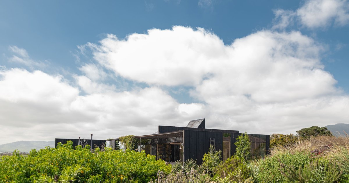 El Tome House is a minimalist Chilean retreat with sliding glass openings, mountain views, and black pine cladding that blends seamlessly with nature.