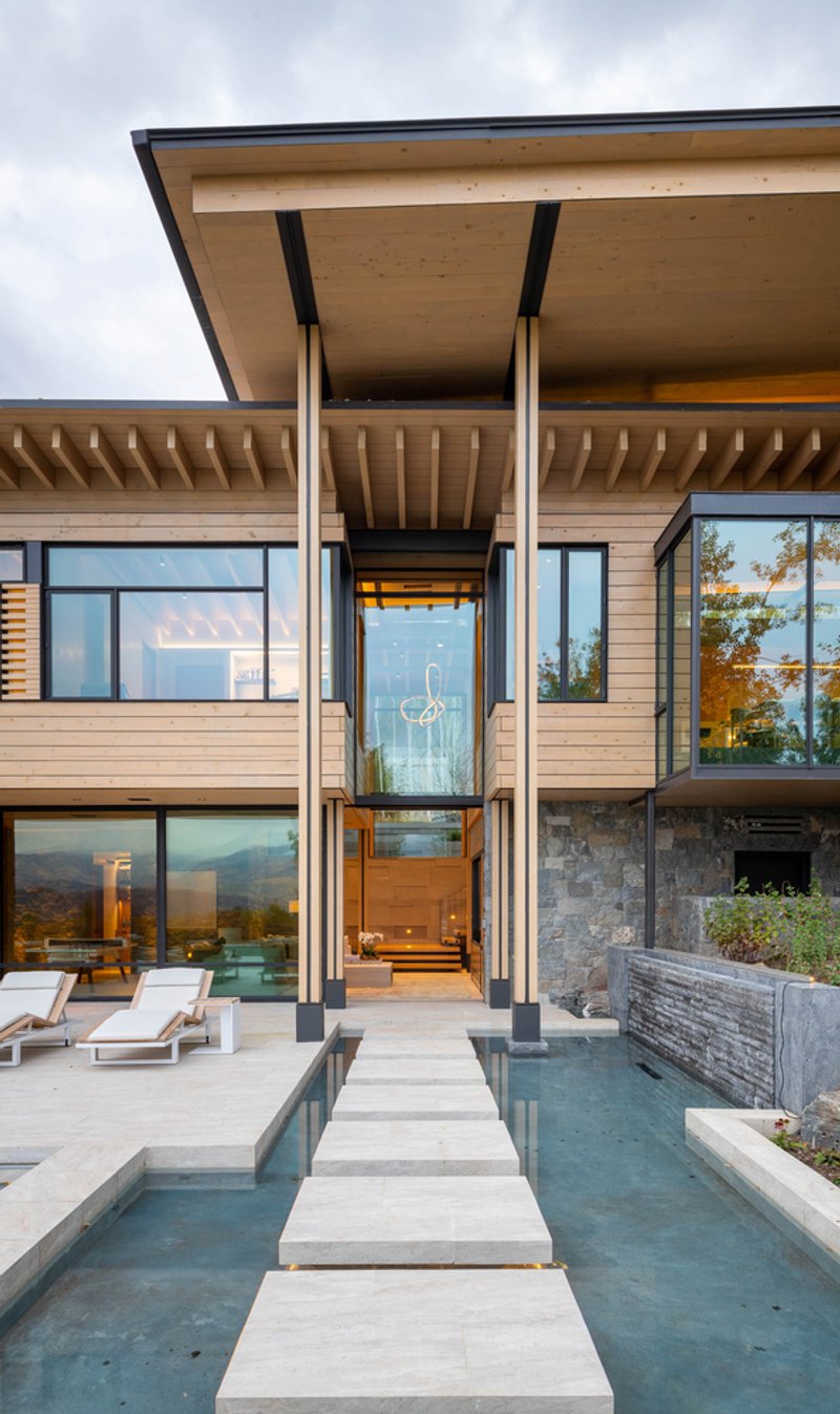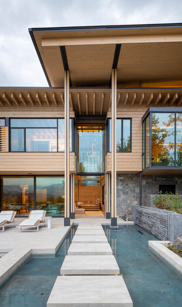 - Expansive glass walls that frame mountain views and maximize natural light.