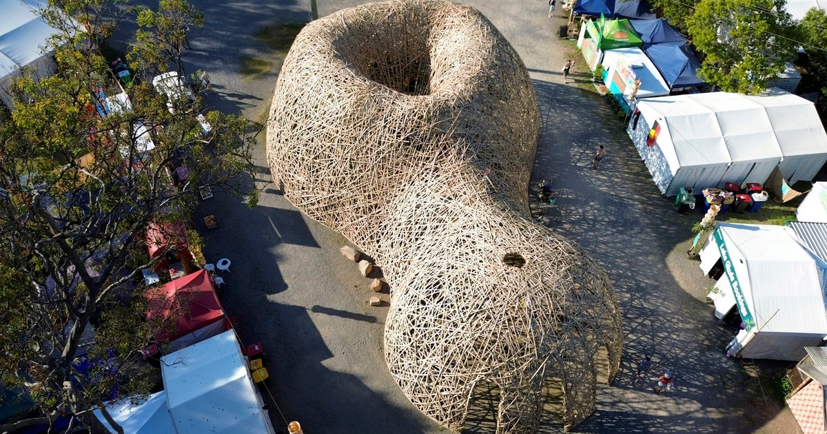 In the quaint town of Woodford, Australia, the Chrysalis Entrance Pavilion emerges as a testament to sustainable bamboo pavilion design. Crafted by the innovative architectural firm Cave Urban, this 450 m² structure redefines the way we approach temporary festival structures with an eco-friendly lens.