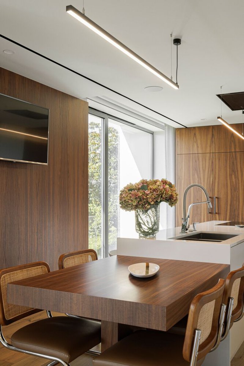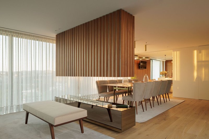 This architectural gem unfolds across two levels, with social spaces and services dominating the foreground, offering panoramic views of the city. Expansive windows in the living rooms and kitchens provide a seamless connection to the outdoors, inviting horizontal light, transparency, and stunning vistas.