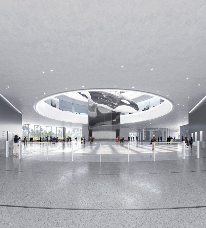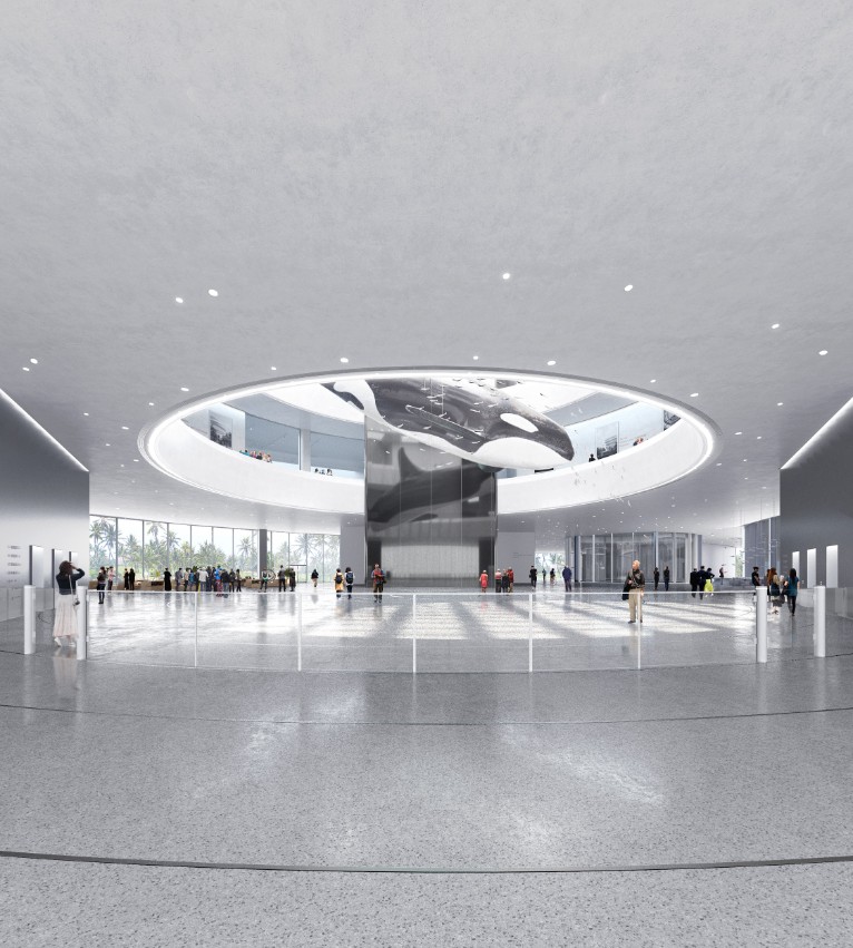 The building is shaped like a cloud in dialogue with nature, set against the backdrop of a rich tropical rainforest. The museum's 46,528 square meter area comprises of 27,782 square meters of above-ground facilities, including permanent exhibition space, a planetarium, a giant-screen theatre, and a flying theatre. The interior structure consists of three floor-to-ceiling cores, curved trusses, spiral ramps, and a roof, all exposed to achieve harmony between the architectural forms and structural system. A skylight in the museum’s dome bathes the spacious atrium in natural light, creating a bright and transparent environment.