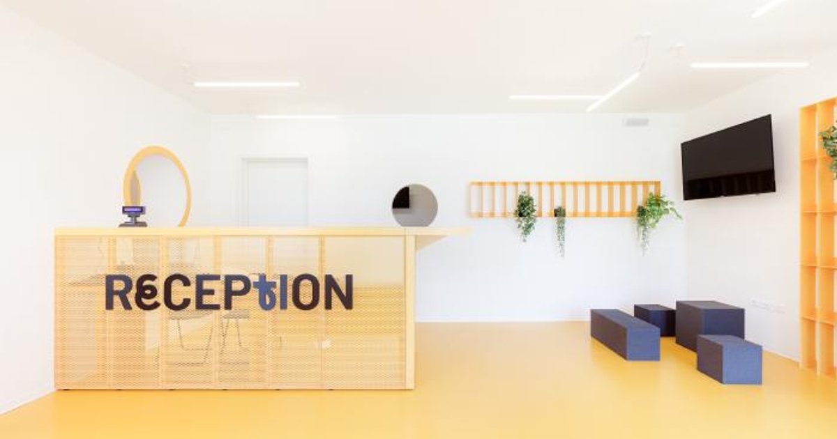 The ingenious design extends to the versatile tables, which can be split into desks or joined together to accommodate different group sizes. In the main bar area, they can be fixed to the perimeter walls, creating a spacious central area. Even the reception desk, info point, and canteen furniture can be disassembled, divided into smaller pieces, and repurposed as needed.
