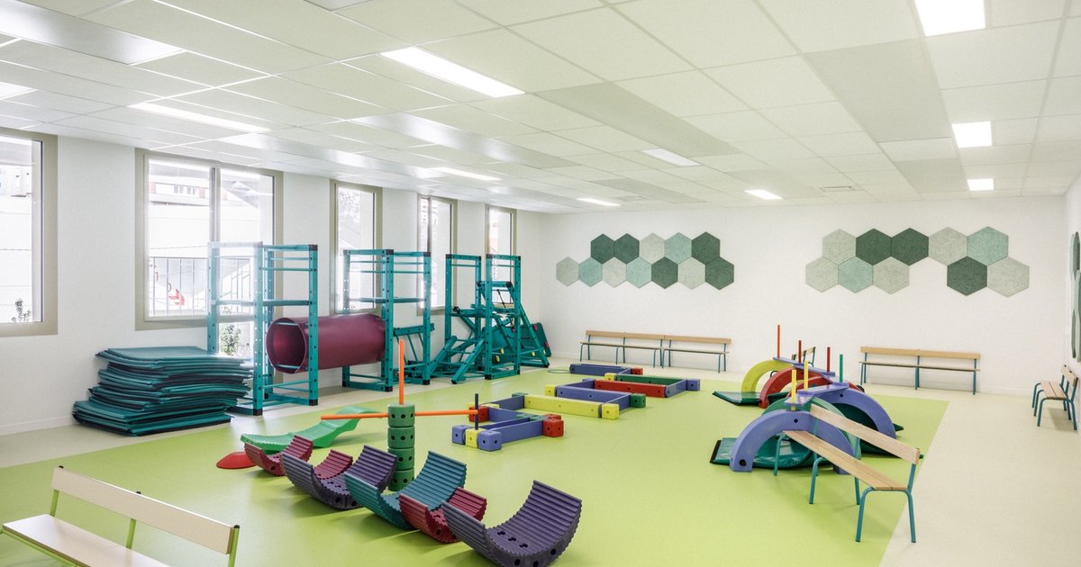 The Geneviève-de-Gaulle-Anthonioz School Group is designed to cater to a diverse range of activities. With 25 classrooms dedicated to nursery and elementary education, students benefit from a thoughtfully designed learning environment. These spaces prioritize natural lighting, airflow, and ergonomic layouts to enhance comfort and productivity.