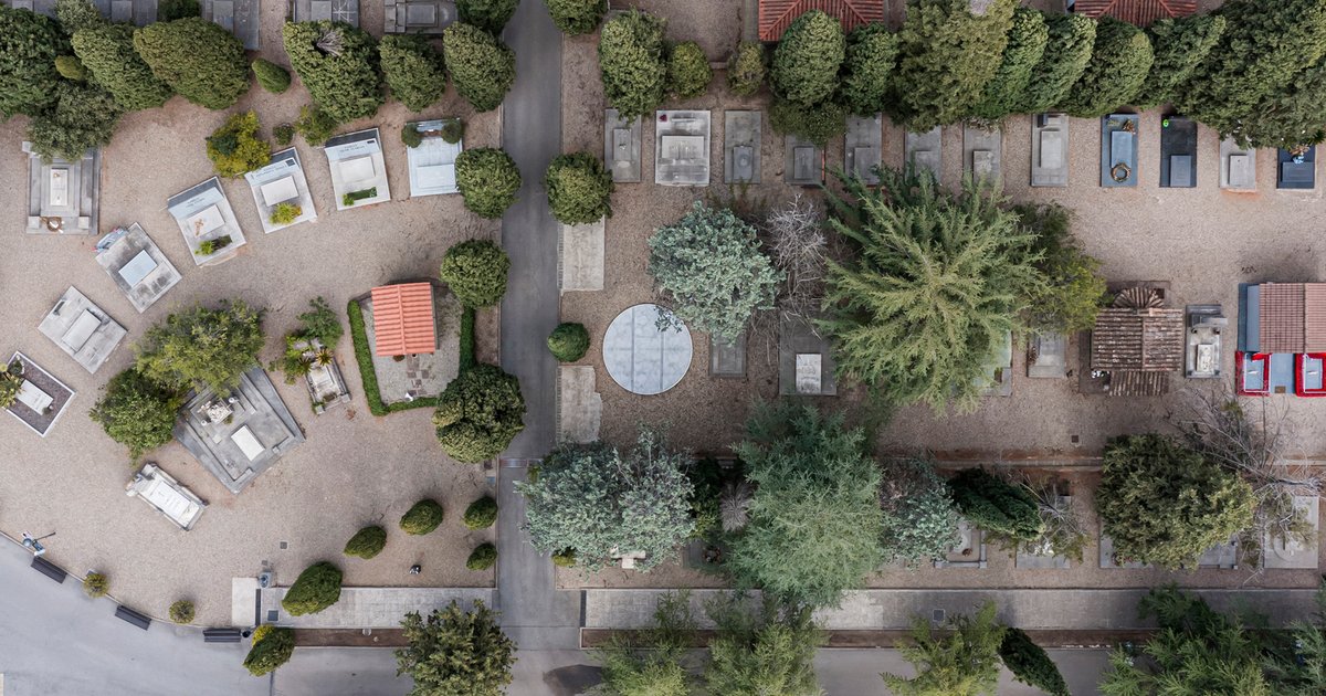 Family Mausoleum in Terrassa by Fransmas Architects features a circular stone design symbolizing eternity, protection, family unity, and sacred spirituality.