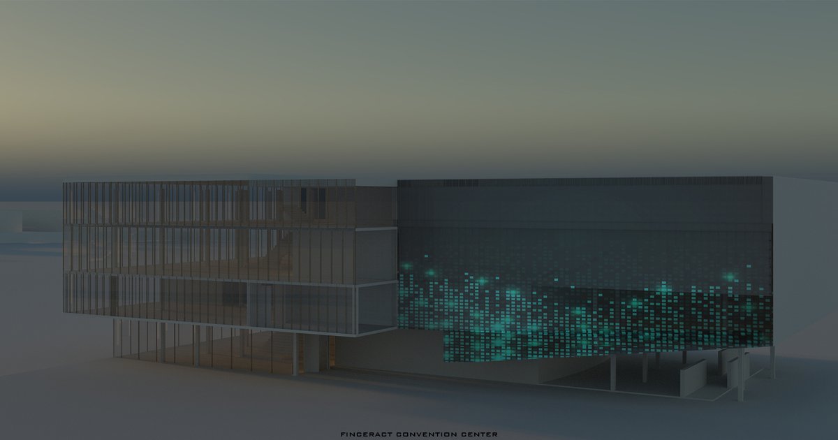 FINCERACT CONVENTION CENTER is a national convention center design that brings together people who are passionate about artificial intelligence. that are coming into play in the lives of human beings today even more in order to exchange information and provide knowledge share favorite And is an interaction space that includes technology, people and intelligence called artificial intelligence innovation. The convention center is located in Chaoyang, Beijing, China, in which the city of Chaoyang. It is also an area surrounded by industry. innovation and science This is in line with the goal that China is poised to elevate itself to become the world's leading innovation country. in the field of artificial intelligence this Convention center There is also an area for displaying various shows. Workshop space, including public space restaurants and café Terms of convention center design It started with the idea of making the building smarter and interacting with people and the contextual environment. by experimenting with placing the building on the area To analyze the feasibility of a building through classification of functional areas. in terms of tools used in design I also went to study about human interaction through this architecture, and how to use the Media façade as a design tool. so that the building is a building that is called Smart Building, which is currently China has been campaigning for more Smart Buildings, leading to conservation. Even more energy and resource savings. The media façade will make the building stand out with a full color LED display and a first photovoltaic system (photovoltaic system) integrated into the glass curtain wall. It harvests solar energy each day and uses it to illuminate the screen at night. reflect the climate cycle of the day through creative use of technology and experimental methods in communication and social interaction. It sets new standards in the context of global urban intervention. It adds interest to other people or cities. in integrating digital technology into architecture and reinforcing Beijing's reputation as a hub for innovation and urban renewal. This is in line with the goal that has set the requirements and scope for the design of this convention center, which is to lead technology through intelligent architecture. including being Smart buildings that can interact with their environment in context. It is environmentally friendly and saves energy. Finally, the origin of the project name FINCERACT CONVENTION CENTER, which is derived from the combination of words between the word Artifical Intelligence ( Ai ) and the word Interact which means interaction. This is also a design concept that requires people and the environment in that context to interact with each other through this convention center architecture