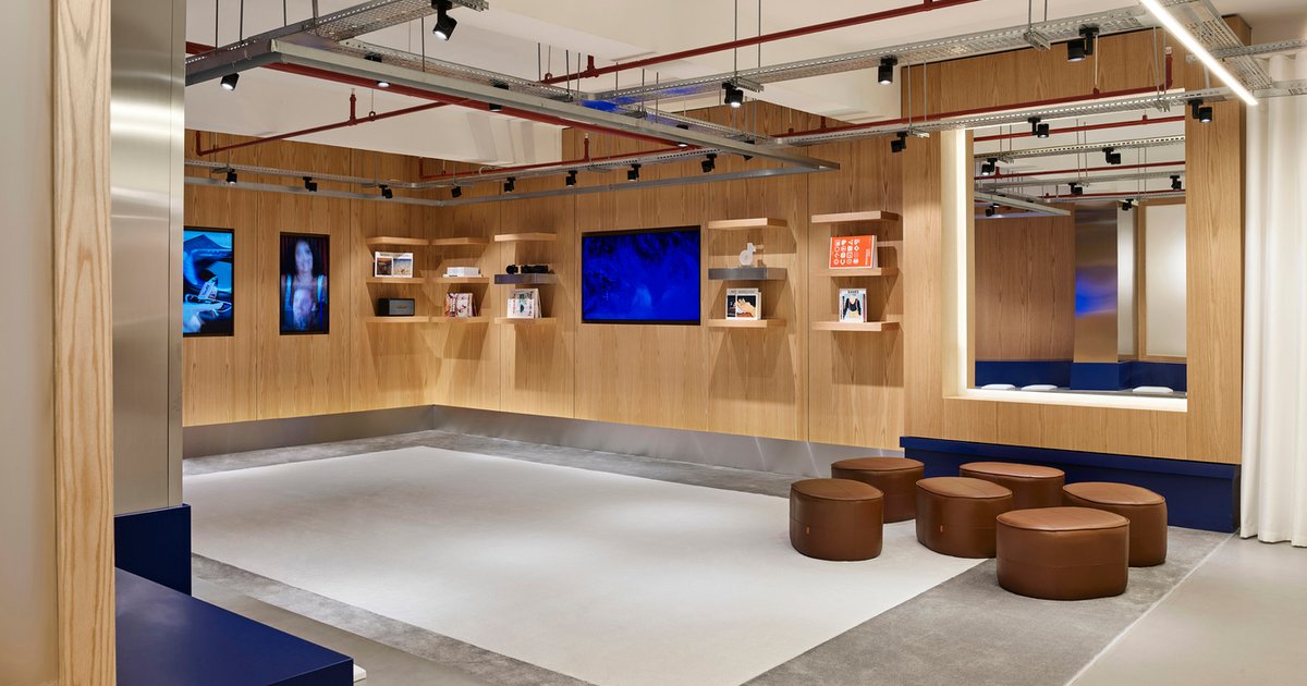 The office’s circulation strategy connects distinct zones of focus, collaboration, rest, and interaction through an intuitive spatial rhythm. One of the standout features is the amphitheater-style blue tiered seating, which promotes transparency and informal engagement between the studio and surrounding areas. These stepped platforms support a range of uses—from formal presentations to casual team gatherings—encouraging a non-hierarchical and inclusive work environment.