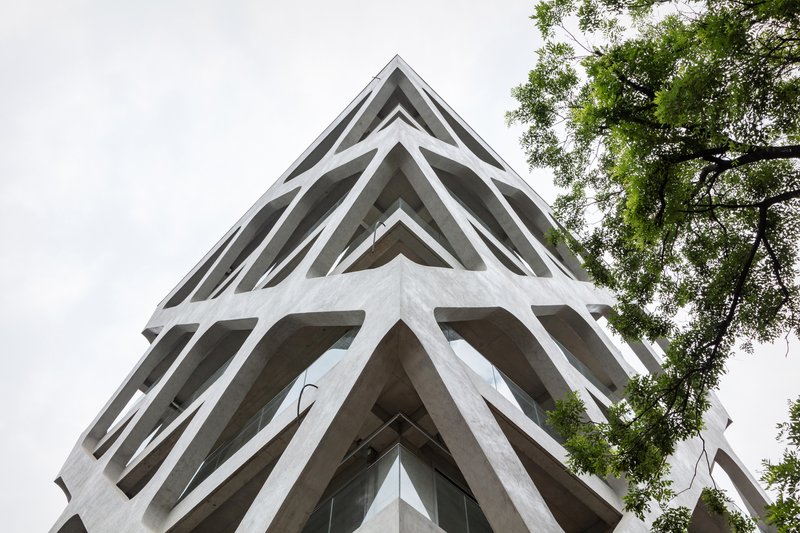 The internal circulation is marked by voids and open spaces that facilitate easy movement throughout the building. These vertical passages create moments of pause, where visitors can take in dynamic views framed by the structural elements. These spaces reinforce the idea of the building as an experience, where the architecture becomes a part of the journey through the space.