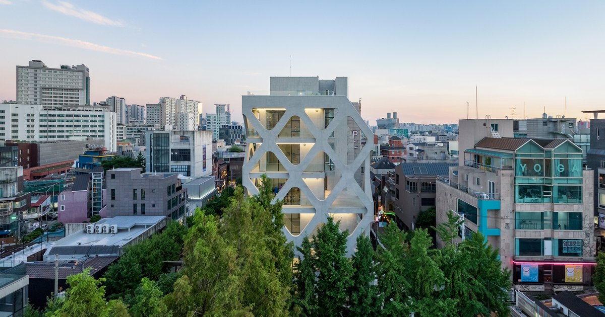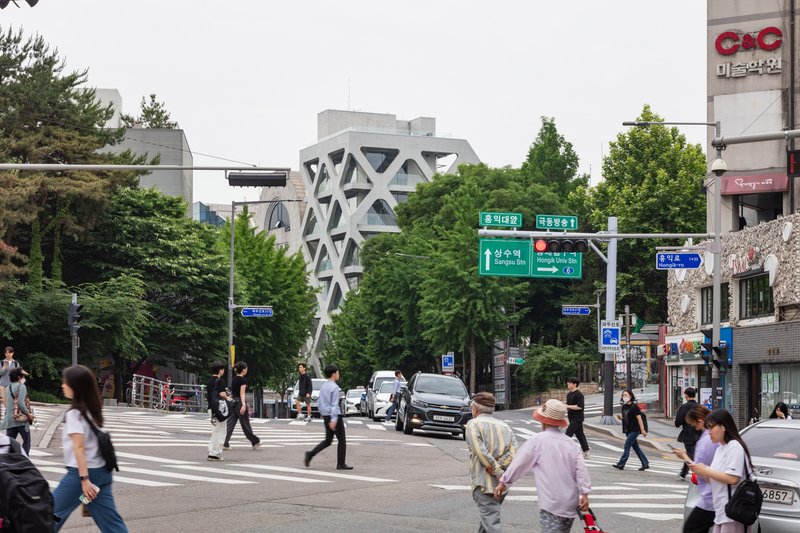 Explore the innovative architectural design of the "Folded Ground" neighborhood facility, seamlessly blending with Hongdae's vibrant urban context.