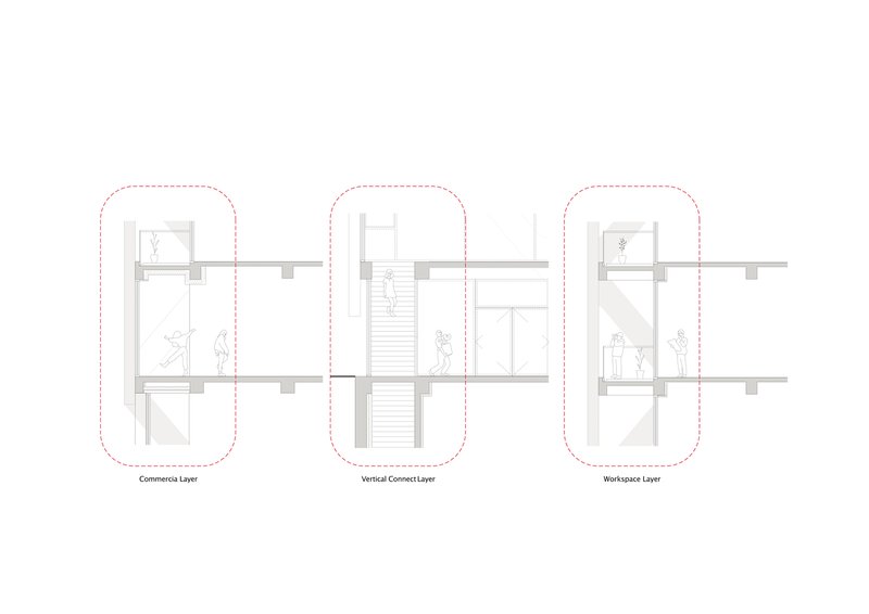 "Folded Ground" is not just an architectural statement; it is designed with purpose. Inside, the facility houses a mix of commercial spaces, offices, and communal areas. The design provides a series of open, adaptable spaces that respond to the changing needs of the community. Commercial areas with high visibility face the bustling streets, while private offices enjoy the tranquility of the interior, offering a balance between exposure and privacy.