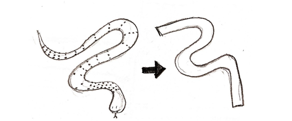 The starting point was a meandering form, intended to resemble the twisted legless body of a snake, inspired by an endemic species found in the area.