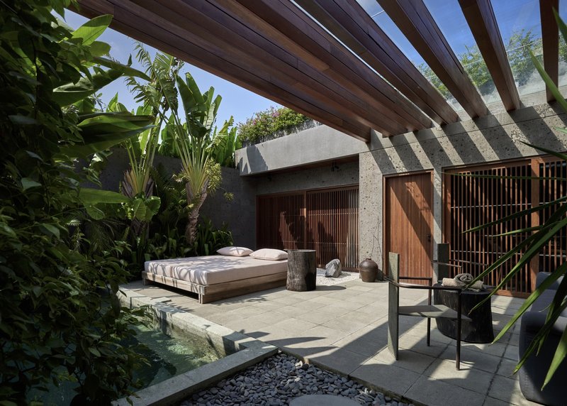 The tropical garden plays a vital role in shaping the spatial experience of the home. Designed to function as an extension of the architecture, the landscape enhances privacy, improves microclimatic conditions, and reinforces the indoor–outdoor living concept that defines contemporary Balinese villas.