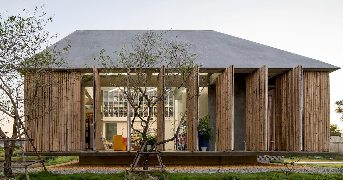 Furnish Studio in Rayong, Thailand transforms industrial waste into a sustainable, ventilated art studio using bamboo and concrete spacers.