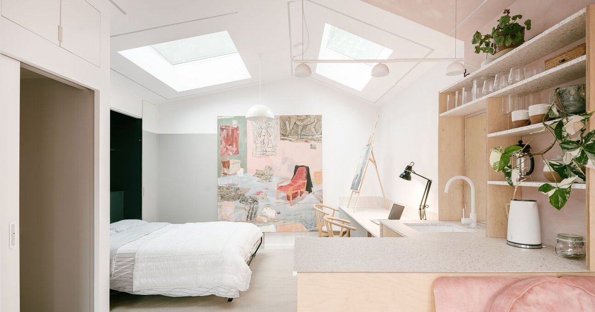 These thoughtful touches do more than provide light—they create atmosphere. The interior’s soft material palette and colorful accents give the small space a sense of openness and character far beyond its modest scale.