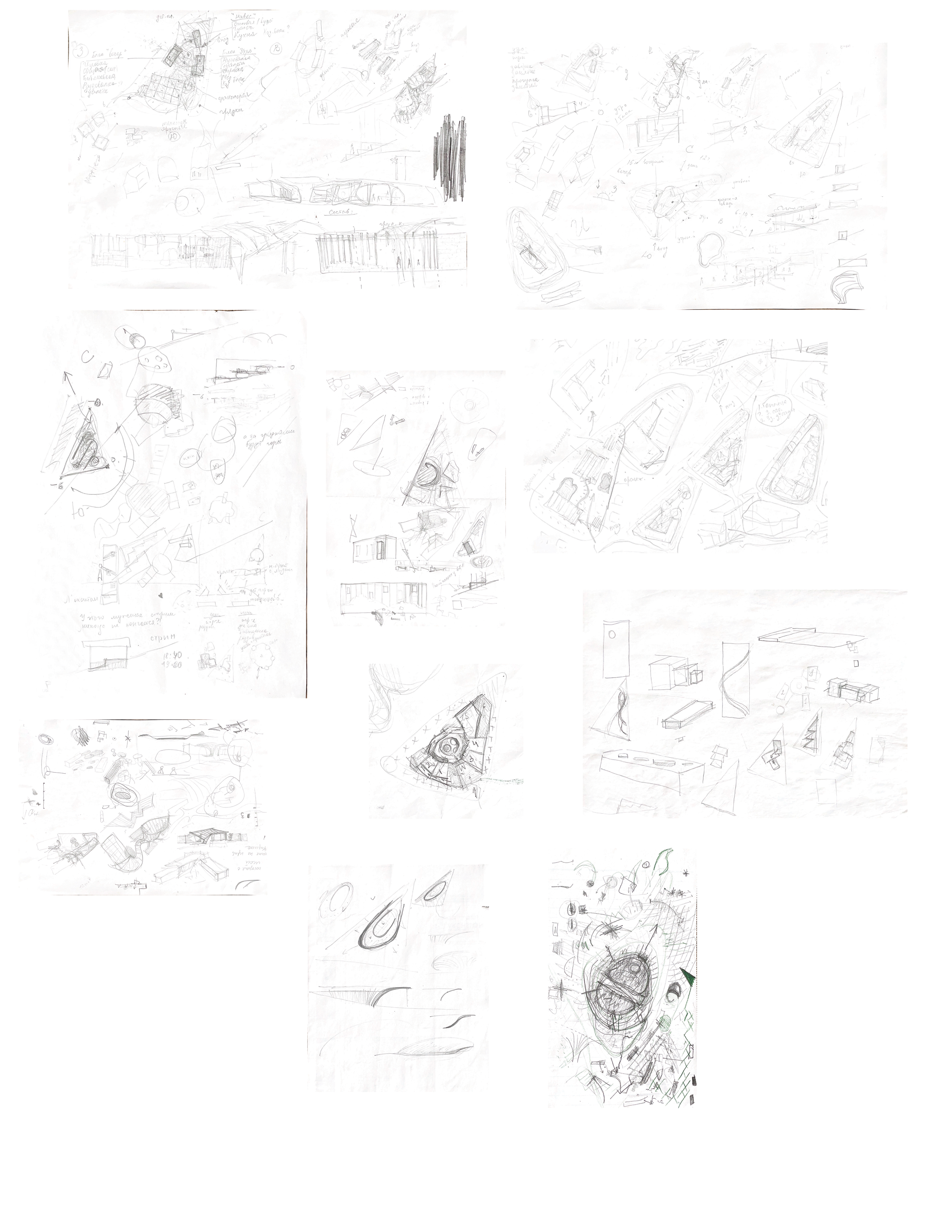 Initially, we wanted to make several small detached buildings with different functions that would be connected by a common corridor. The main disadvantage was that getting from one end to the other would take a very long time. Also, it would require the installation of a large number of stairs, due to height differences. Which is a threat to the safety of children aged 5-6 years, since they are 90% in the active phase.