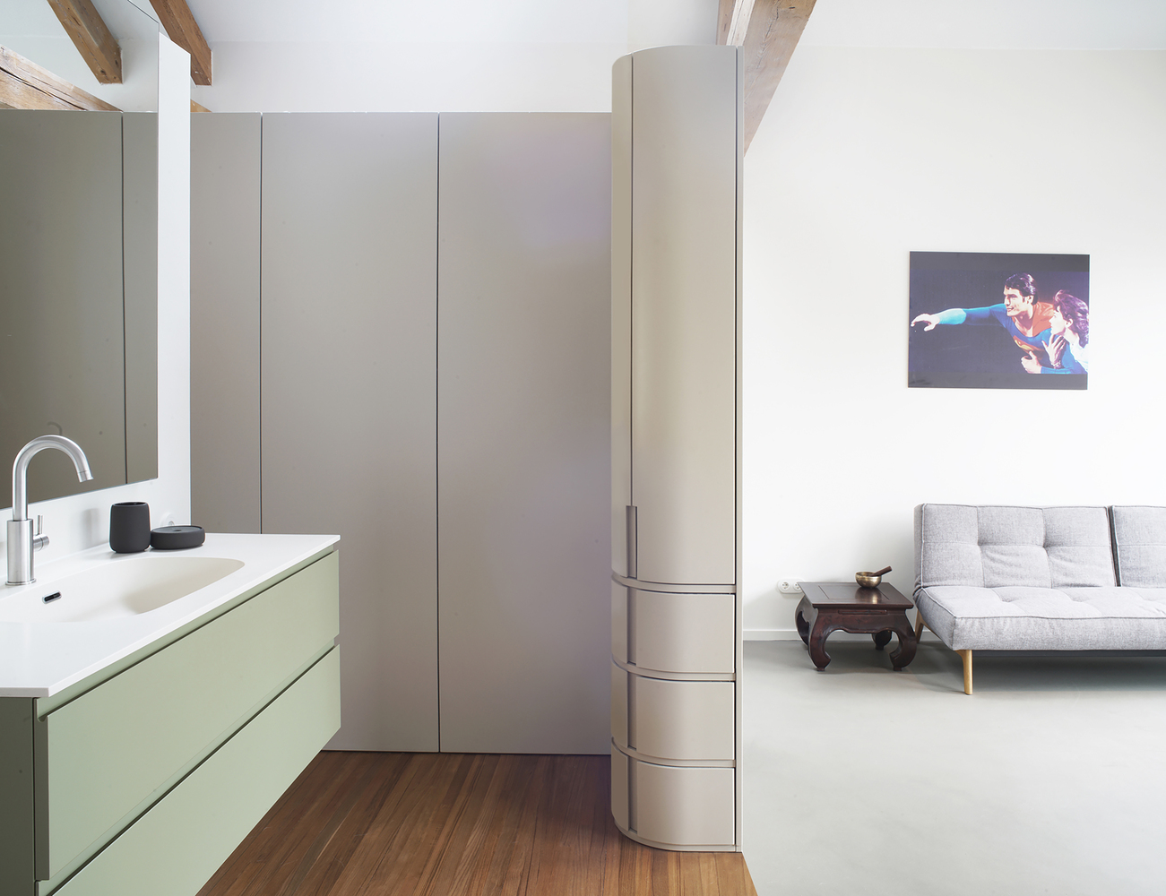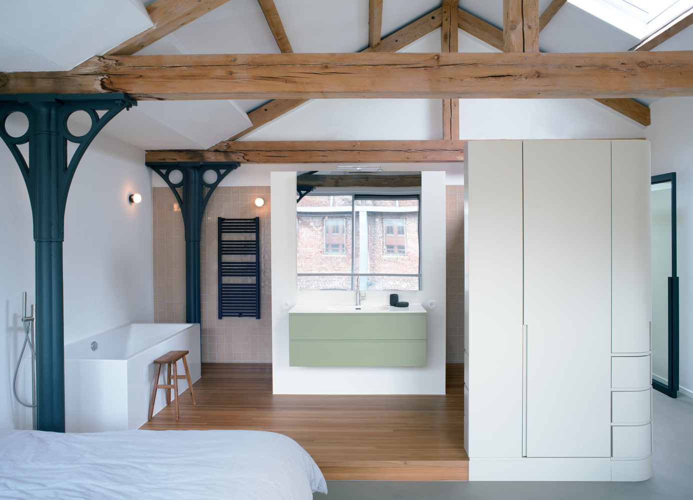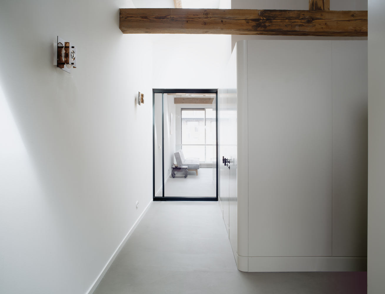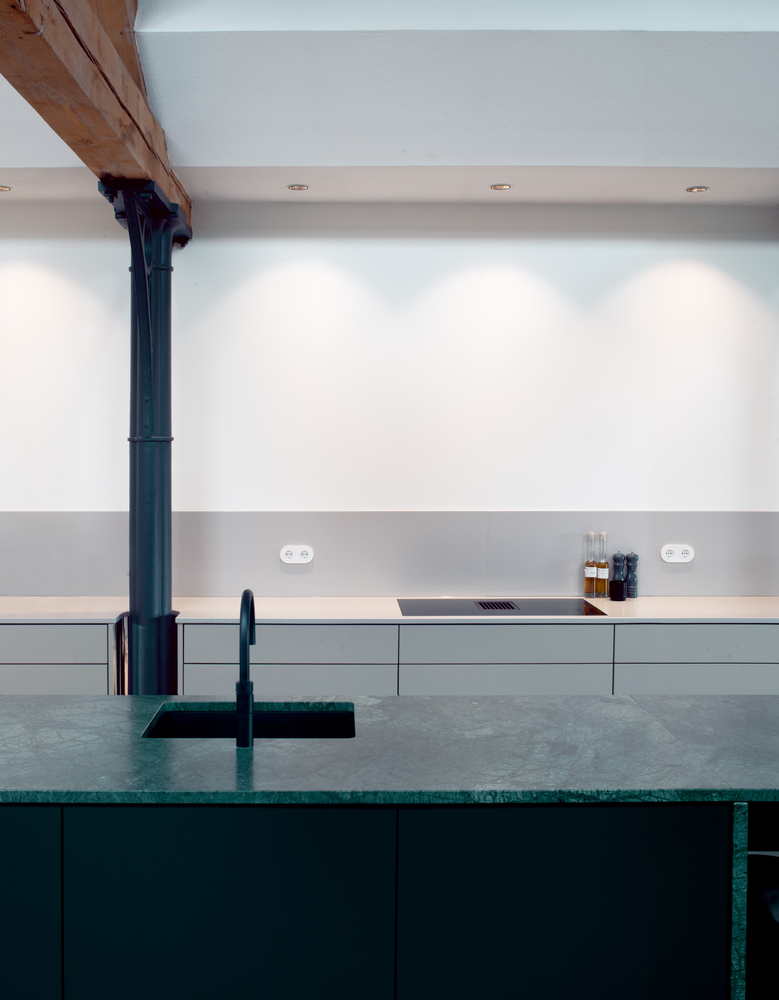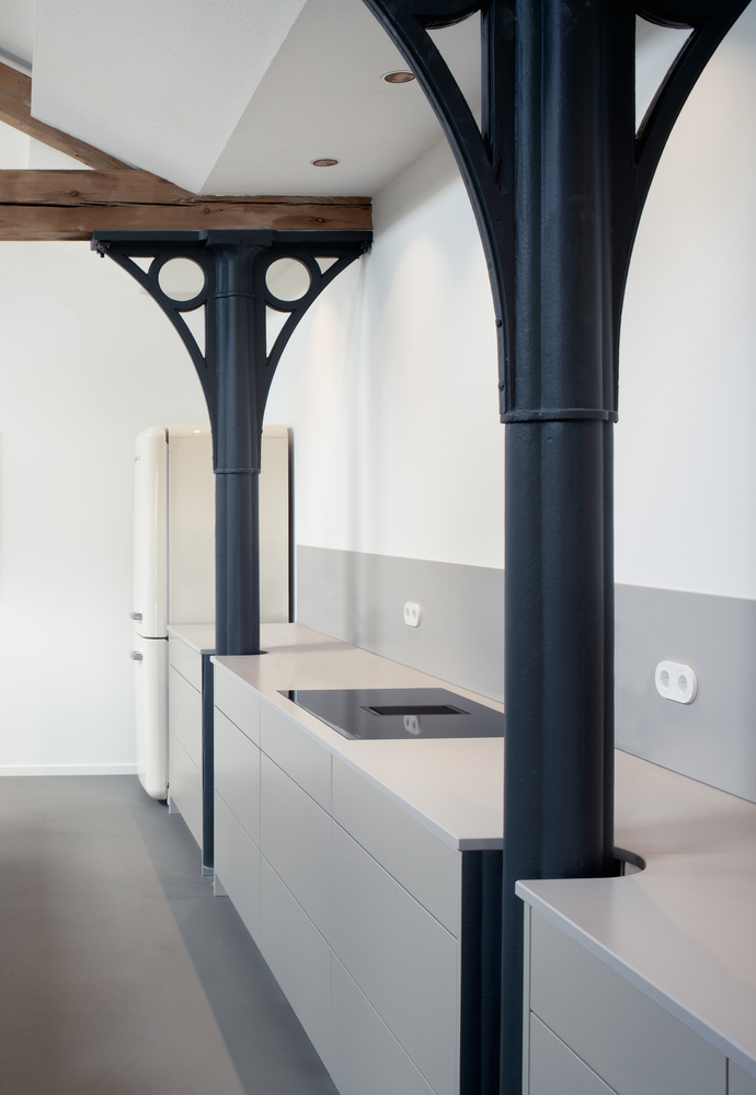 Occupying 200 square meters, this ambitious apartment renovation project is grounded in respect for the site’s architectural history. Over the past three decades, the space had accumulated layers of modifications from various occupants, resulting in a fragmented and inefficient layout. Studio Appelo’s vision was to strip the apartment back to its core structure, exposing the monumental load-bearing beams and original materials. The result is a design that re-establishes spatial coherence while celebrating the building’s industrial past.