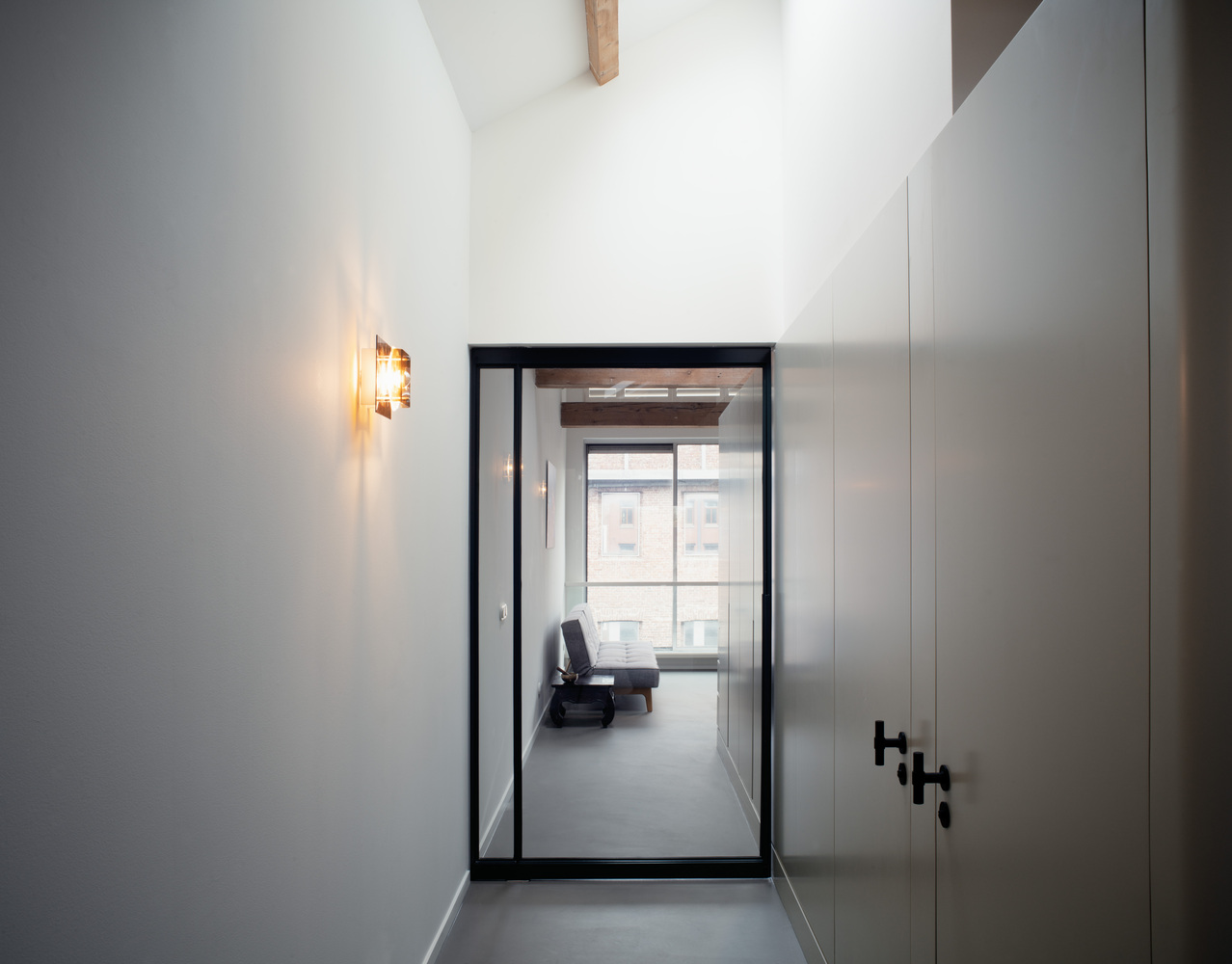 This apartment reimagines urban dwelling by connecting its interiors to the surrounding landscape. Whether sipping coffee while gazing at the canal and zoo from the cathedral-like living space or relaxing in the bedroom bath with courtyard views, the architecture invites a deeper relationship between indoor life and the city outside.