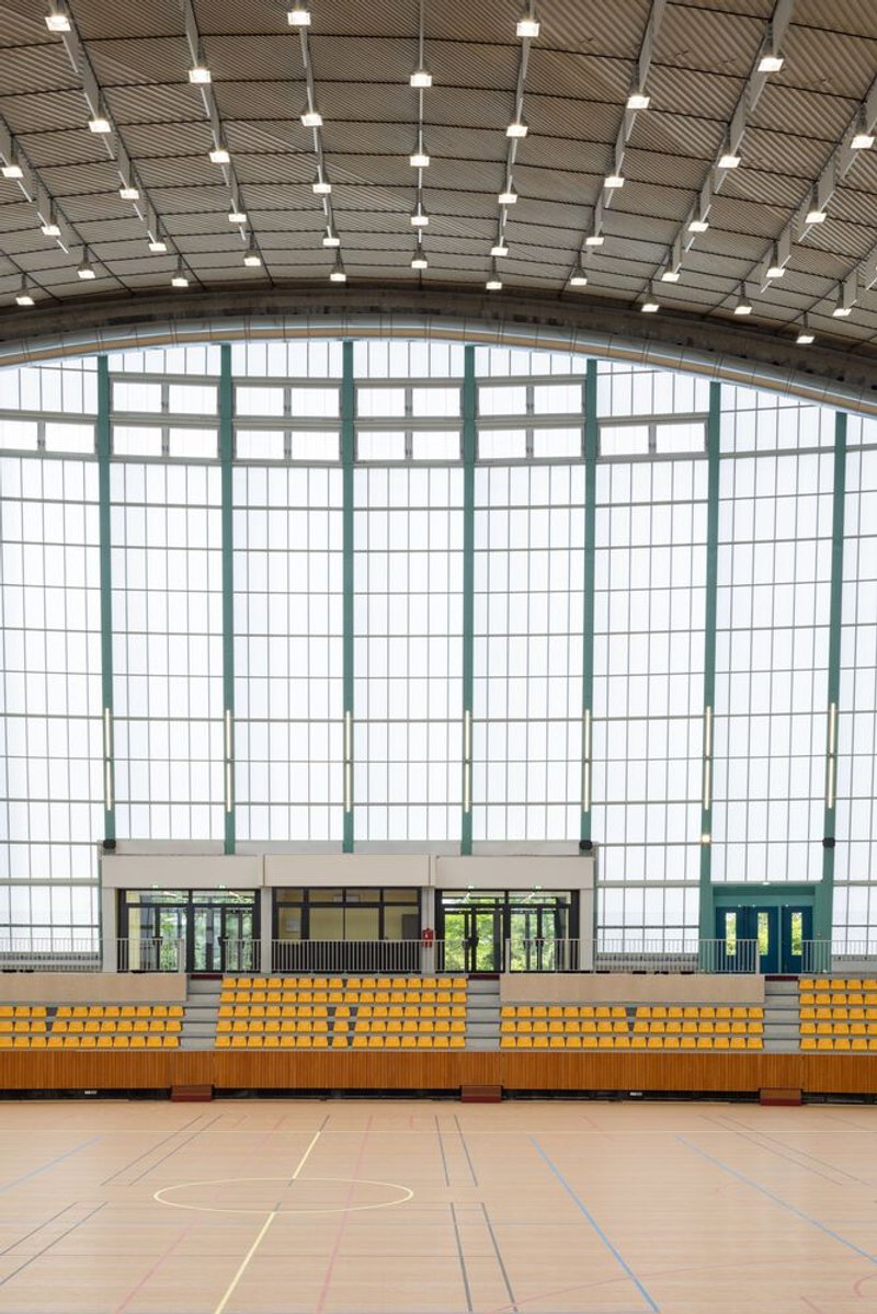 The renovation of the Grande Nef de l'Île-des-Vannes by Chatillon Architectes marks a significant milestone in the adaptive reuse of modernist sports architecture in France. Located in L'Île-Saint-Denis, just north of Paris, this iconic structure has been carefully restored and transformed into a contemporary, high-performance sports and cultural venue, while preserving its historic identity and architectural expression.