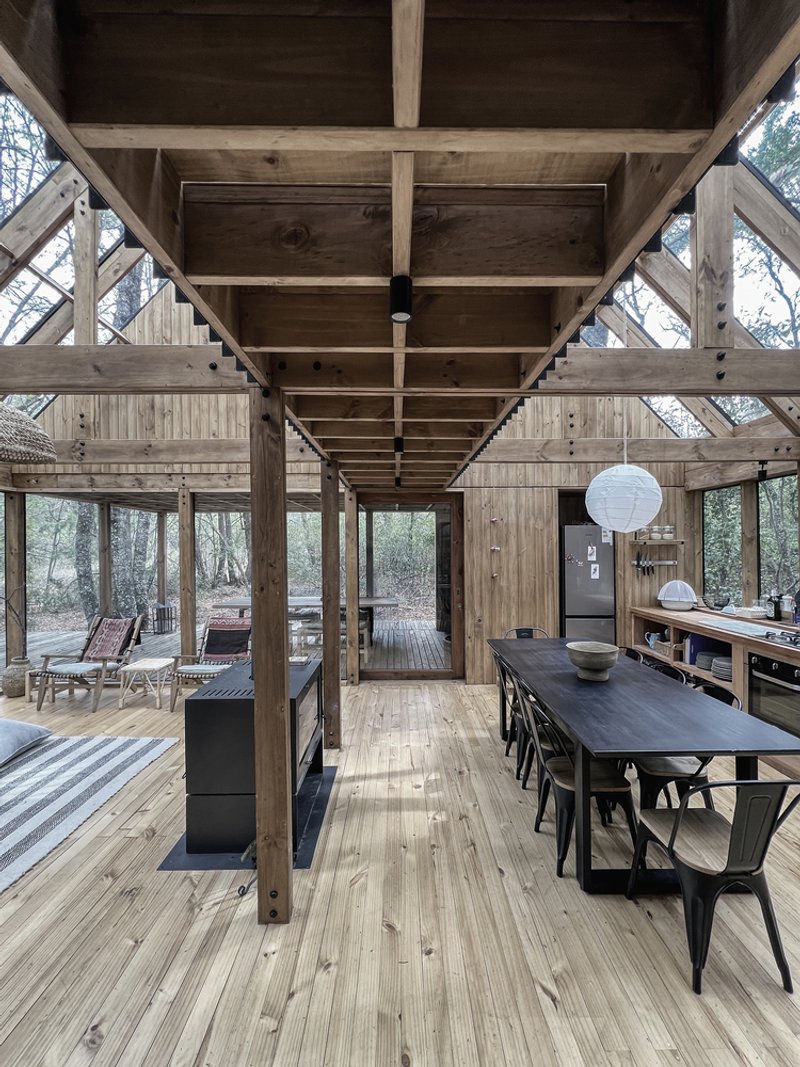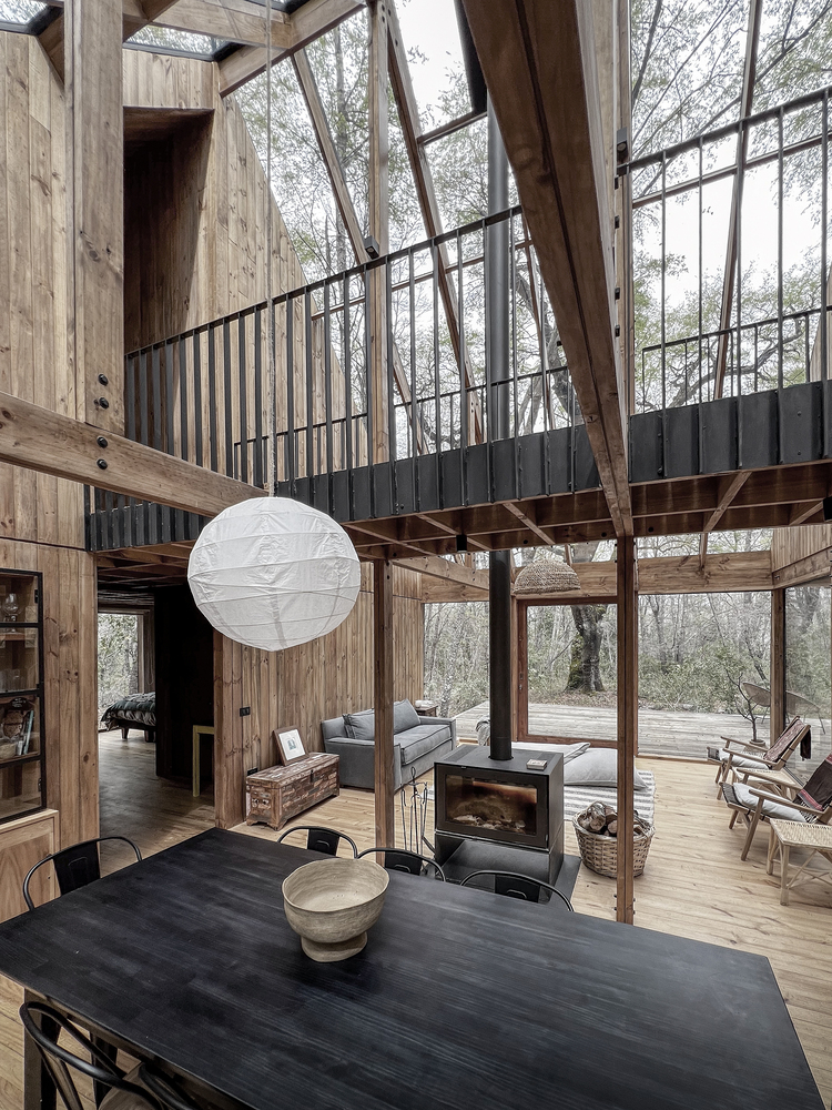 Situated at 950 meters above sea level in the Andes Mountains, the Greenhouse capitalizes on the ever-changing landscape of the Maulino Forest. The deciduous oak trees provide natural shading in summer and allow sunlight to penetrate during the cooler winter months, creating an organic balance between indoor comfort and outdoor beauty.