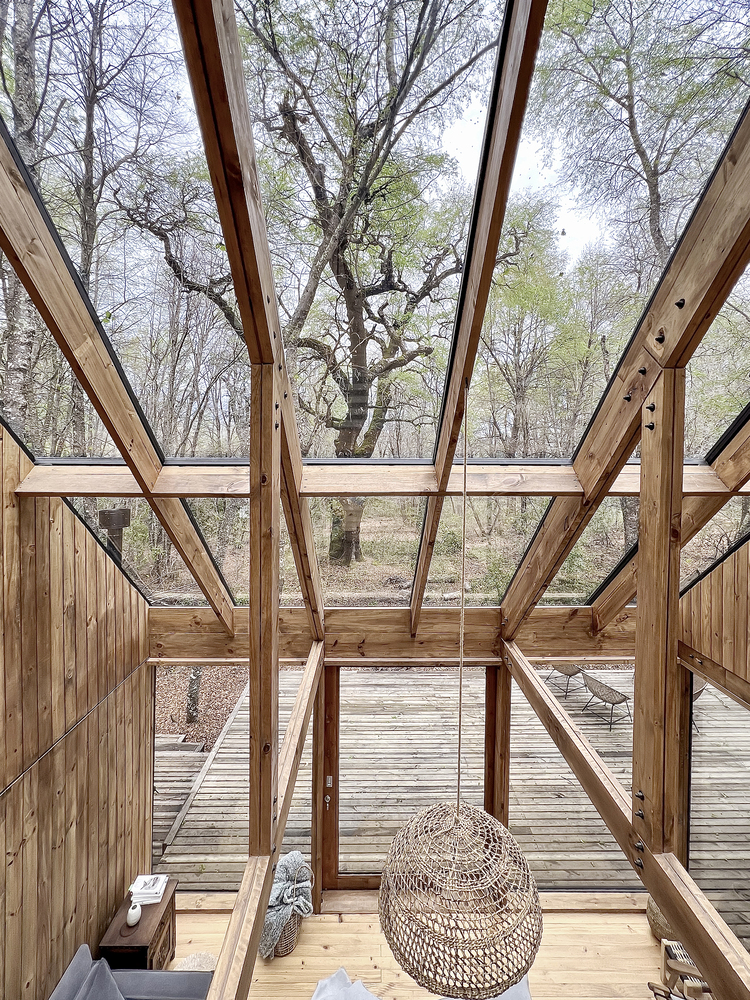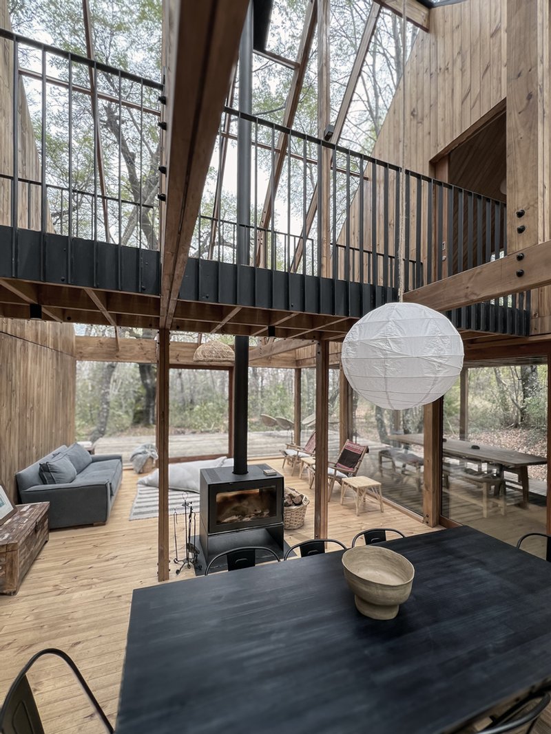 The Greenhouse flips the traditional concept of a greenhouse. Here, the plants remain outside, and the interior becomes a transparent haven, enveloping residents in the forest's vibrant cycle of seasons. The glazed envelope enables vertical and horizontal views, offering a panoramic experience of the forest's splendor.