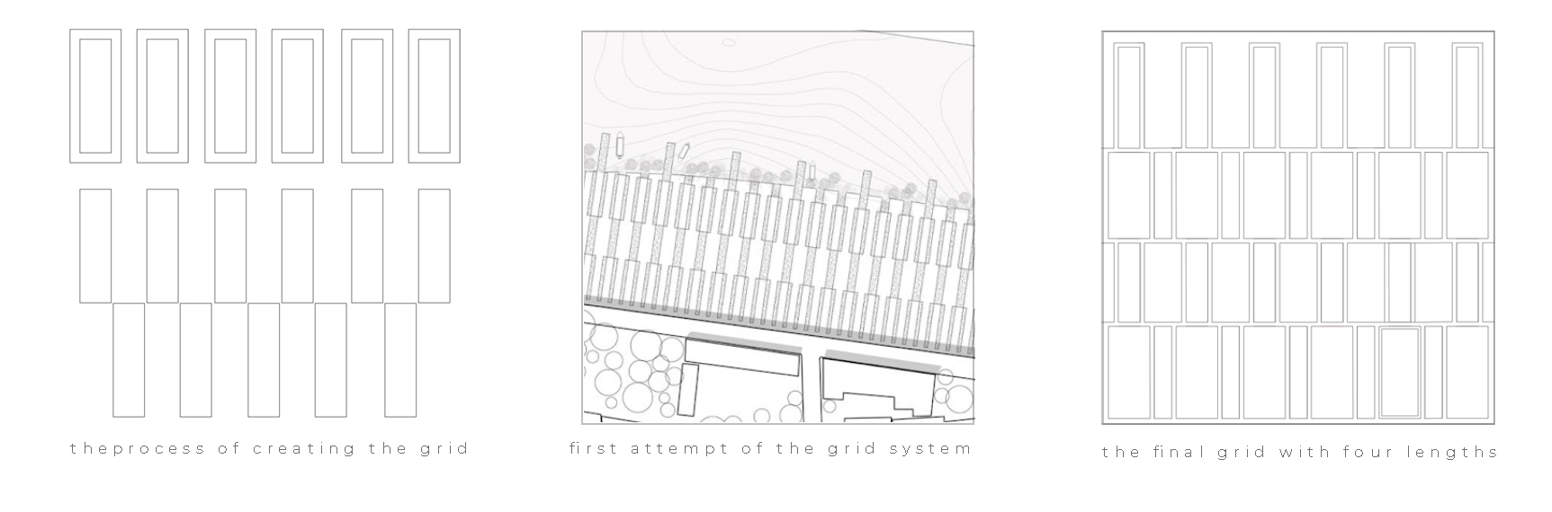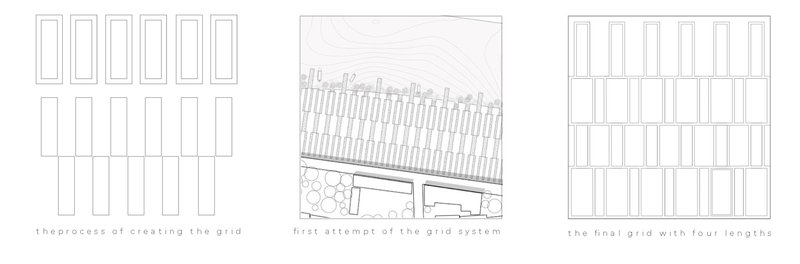 Grid of Agreement is a metaphore of the project, where human connect with the nature. Inspiration for the grid were italian renaissance elevations, where the rectangular shapes are arranged in rows. In the conception each shape has its own function. Around each of them there are 1,5 meters wide paths, to easily get around each of them.