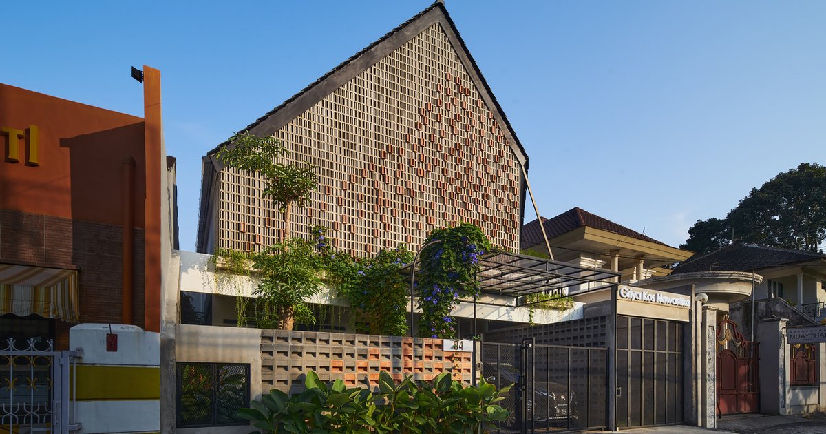 Climate-responsive boarding house in Yogyakarta by Saturasi Architects, blending private residence and communal living with natural ventilation and roster facade.