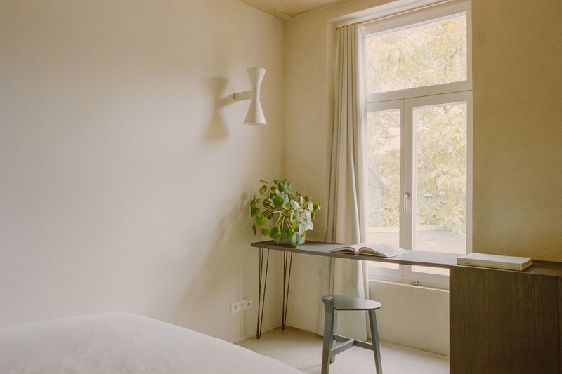 GuestHouse 50 seamlessly integrates its historic character with modern uses. It serves as a family residence while also hosting a variety of activities. The spaces are designed for hosting exhibitions, yoga classes, and collaborative work sessions, showcasing its adaptability.