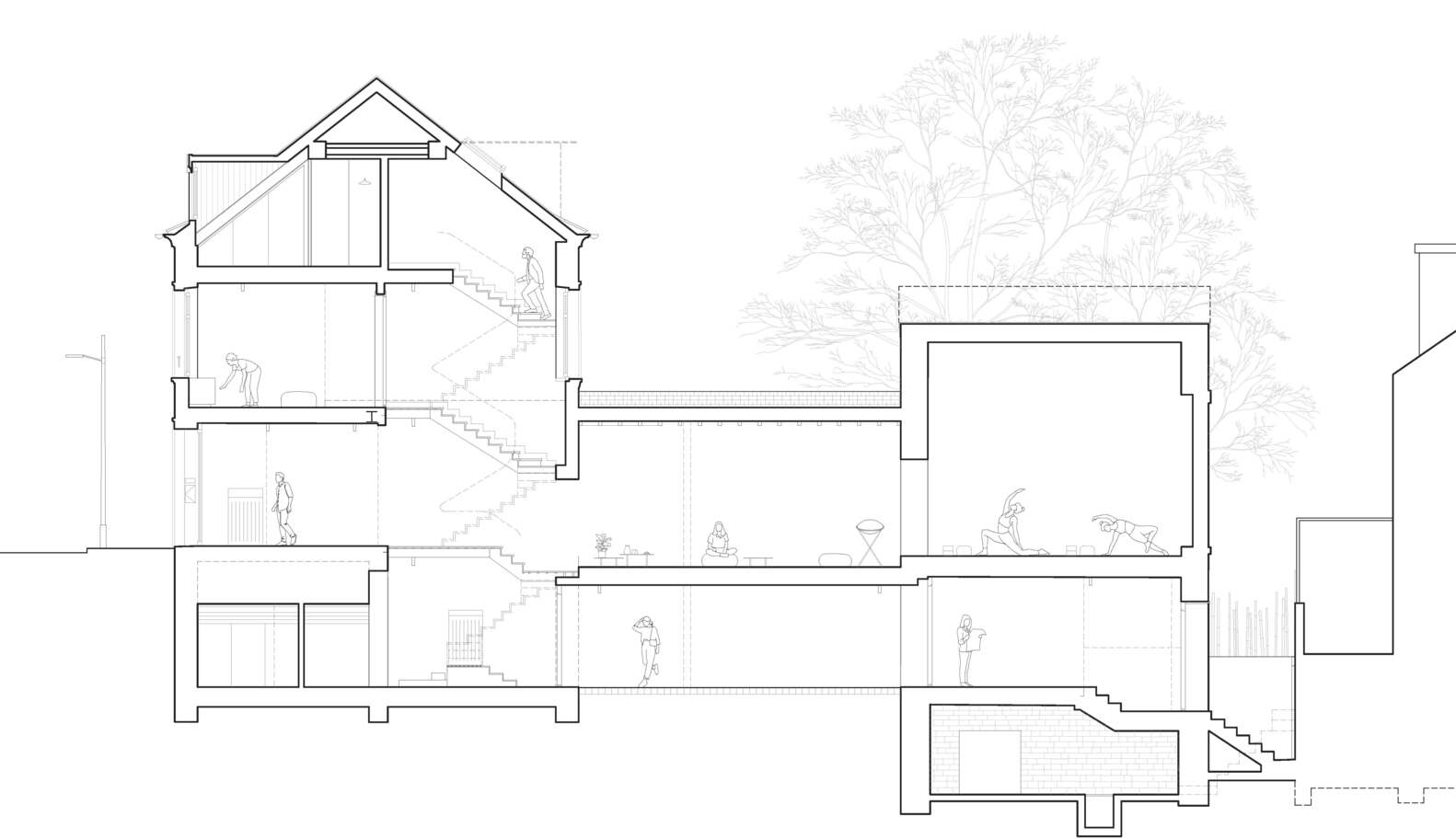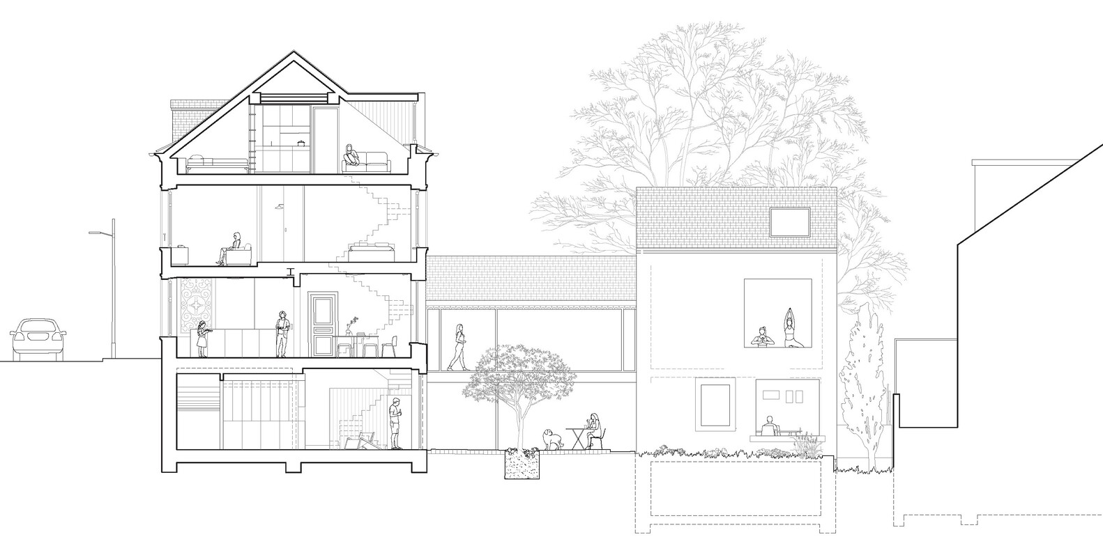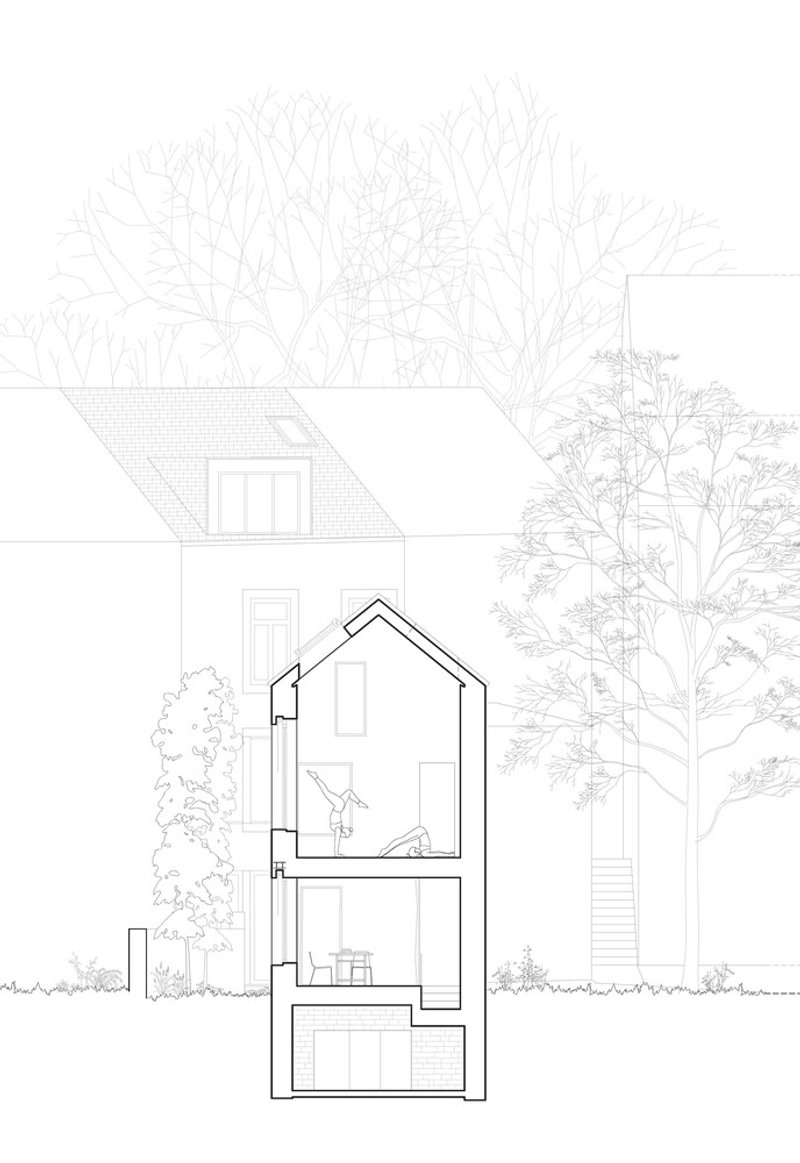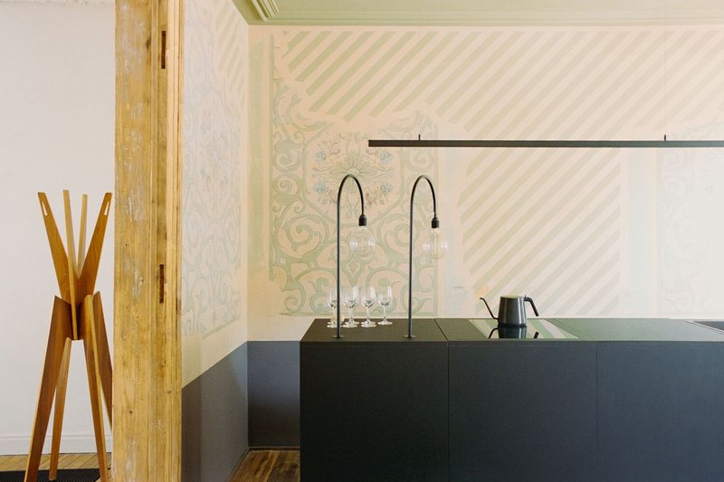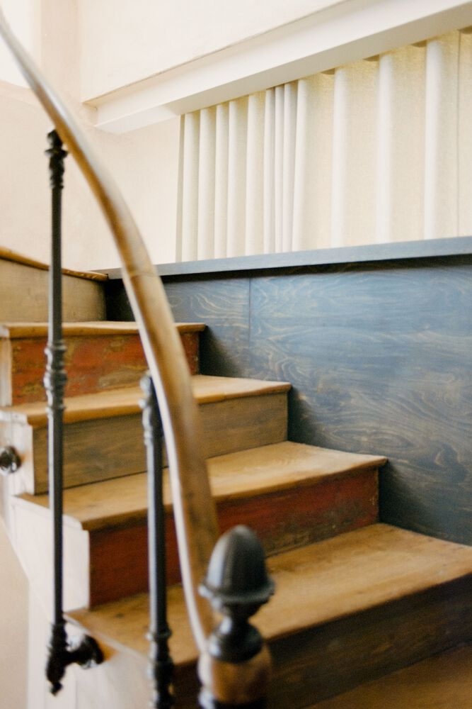 After a fire in 2012 left the house inhabitable, it was on the brink of demolition. A group of neighbors intervened to save the property, uncovering unique features like the original sandstone structure and decorative elements beneath layers of wallpaper and carpets. These discoveries inspired a sensitive restoration that celebrated the building's historic charm.